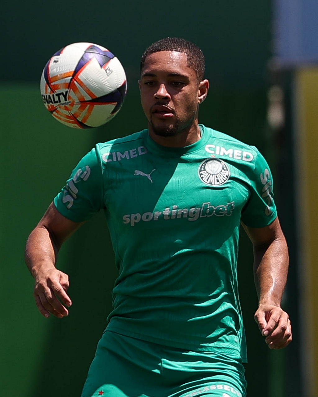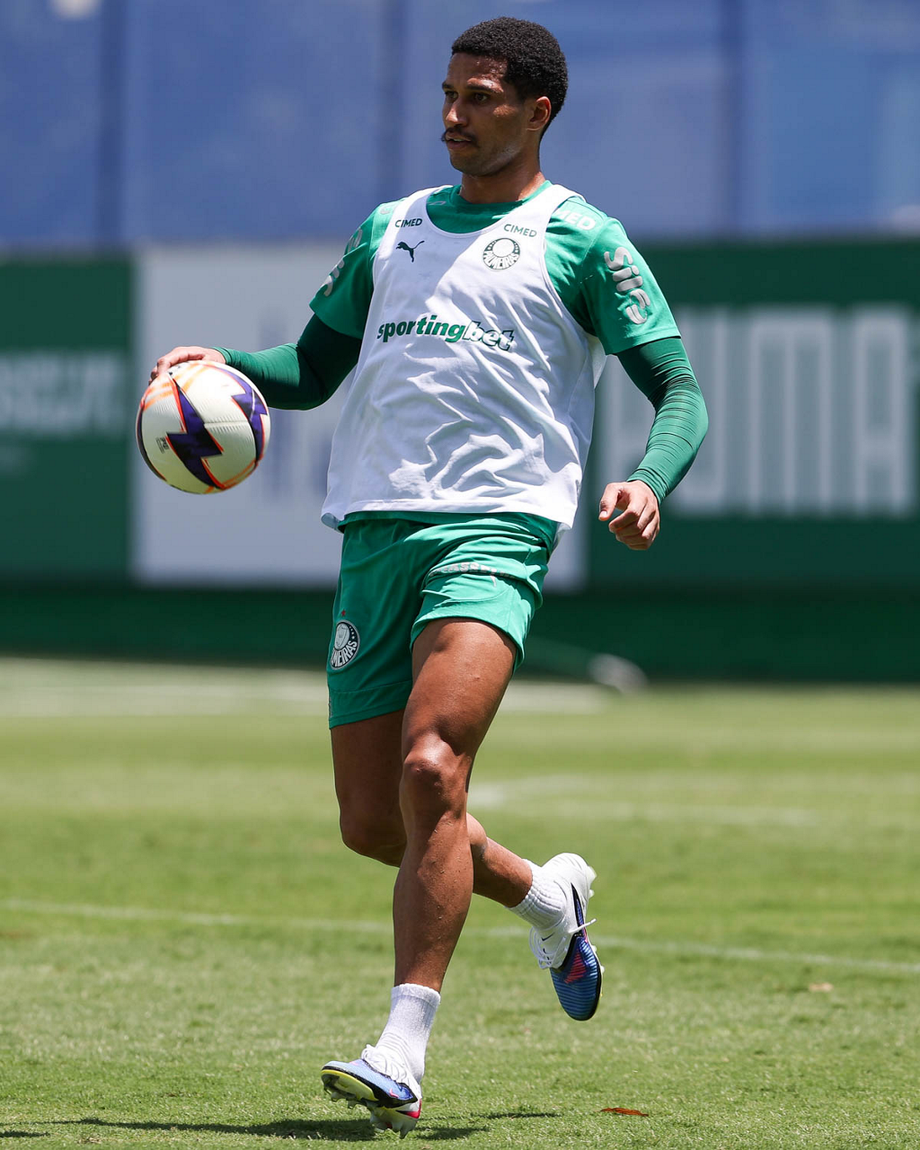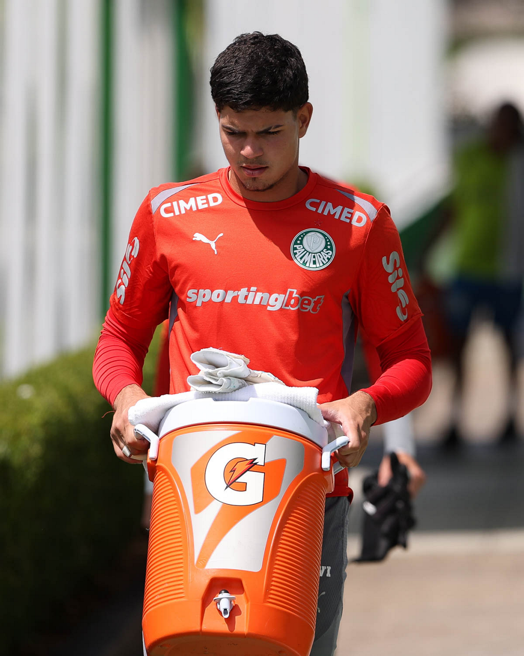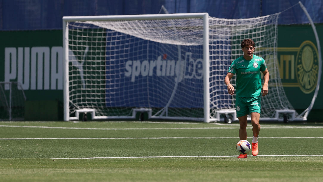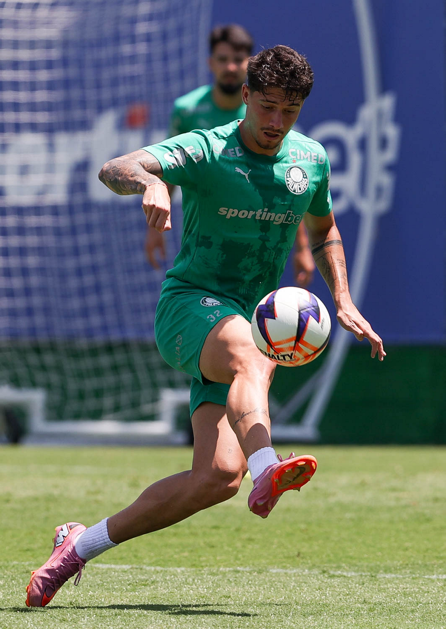 O jogador Vitor Roque, da SE Palmeiras, durante treinamento, na Academia de Futebol. (Foto: Cesar Greco/Palmeiras/by Canon)