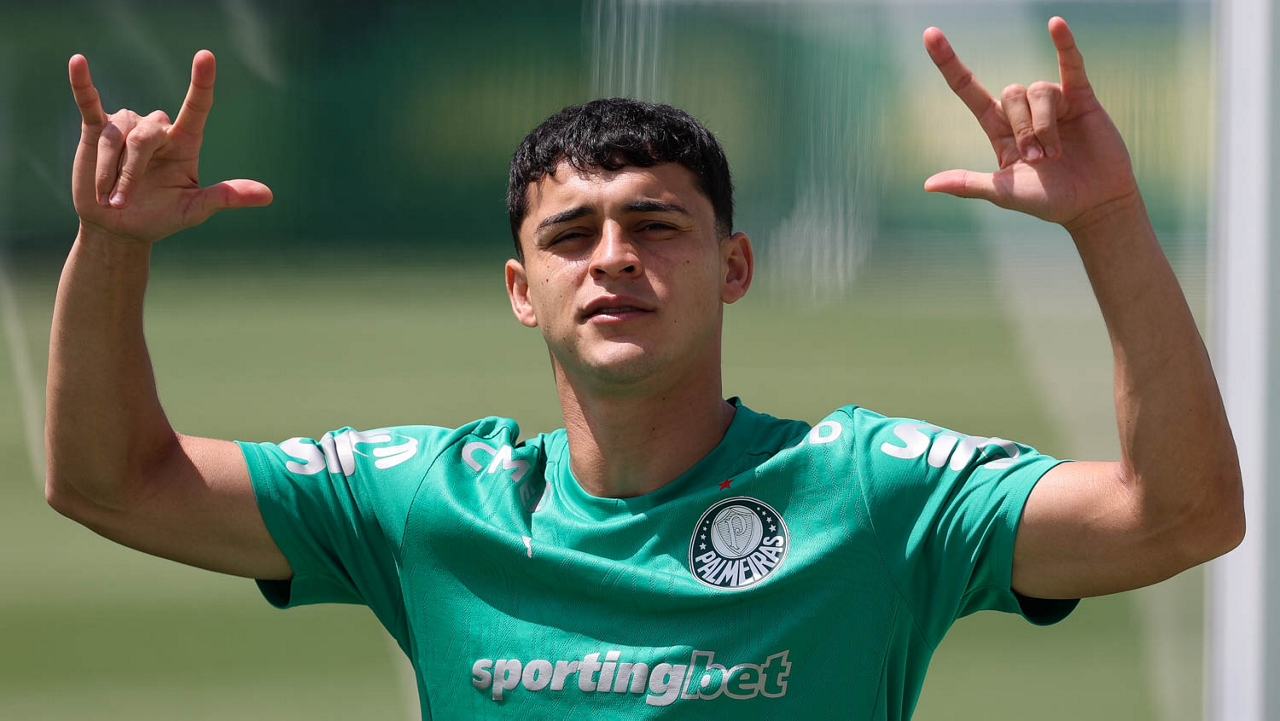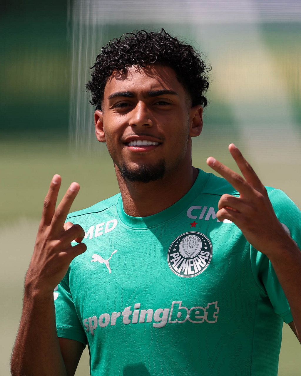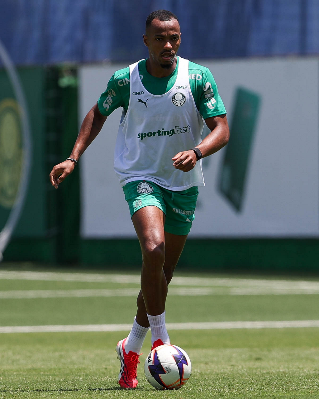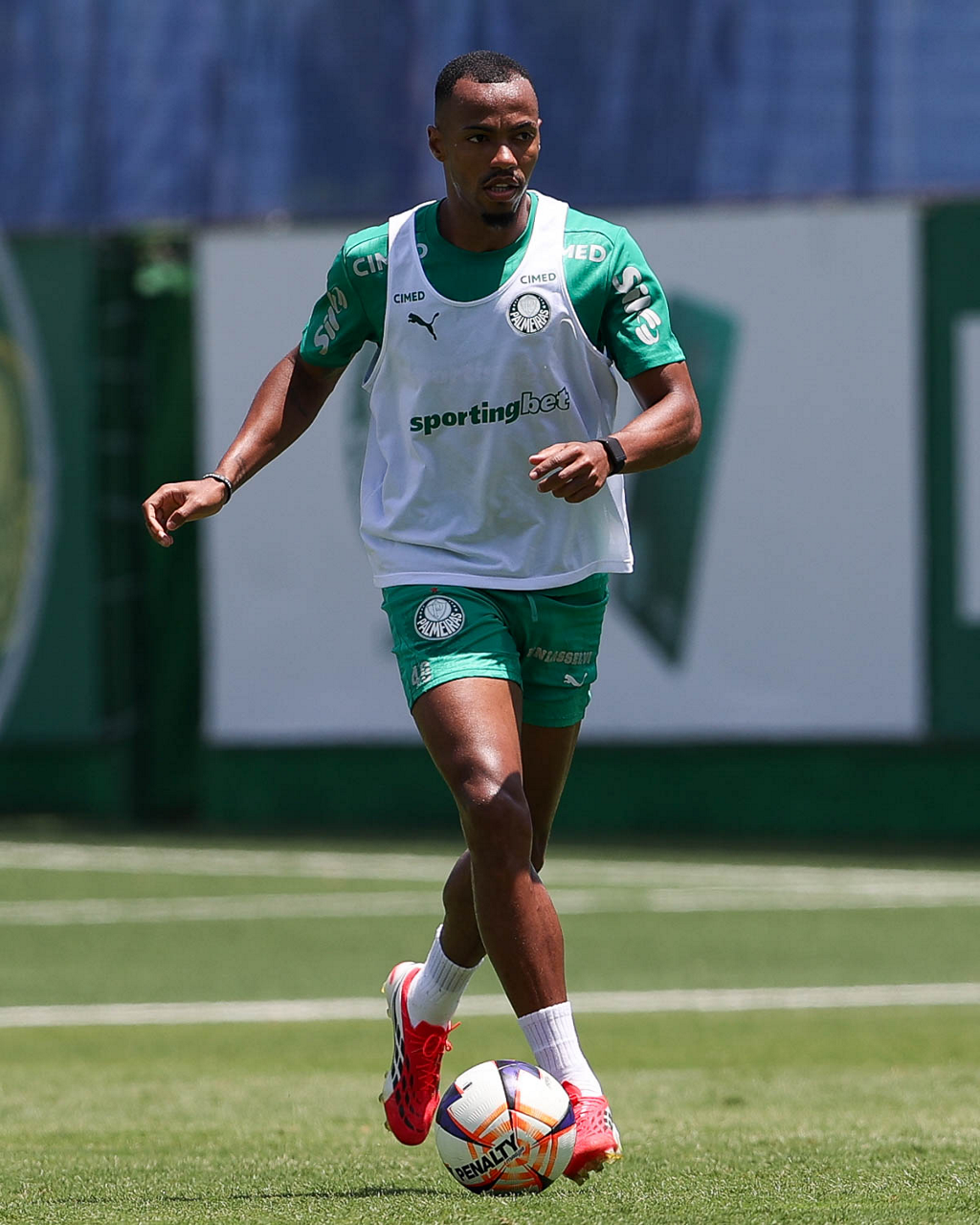 O jogador Vitor Roque, da SE Palmeiras, durante treinamento, na Academia de Futebol. (Foto: Cesar Greco/Palmeiras/by Canon)