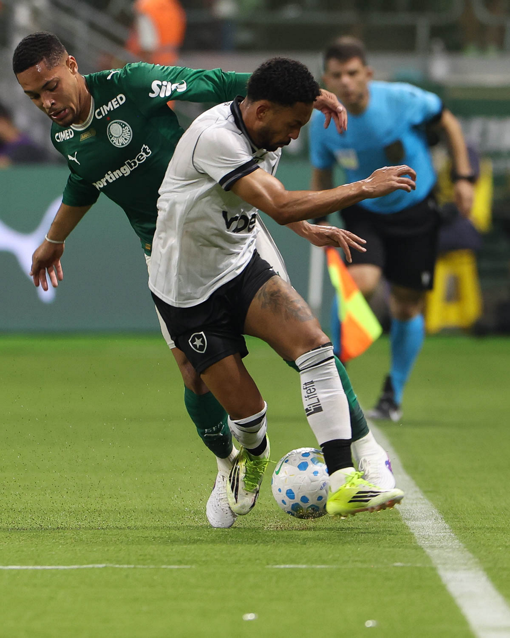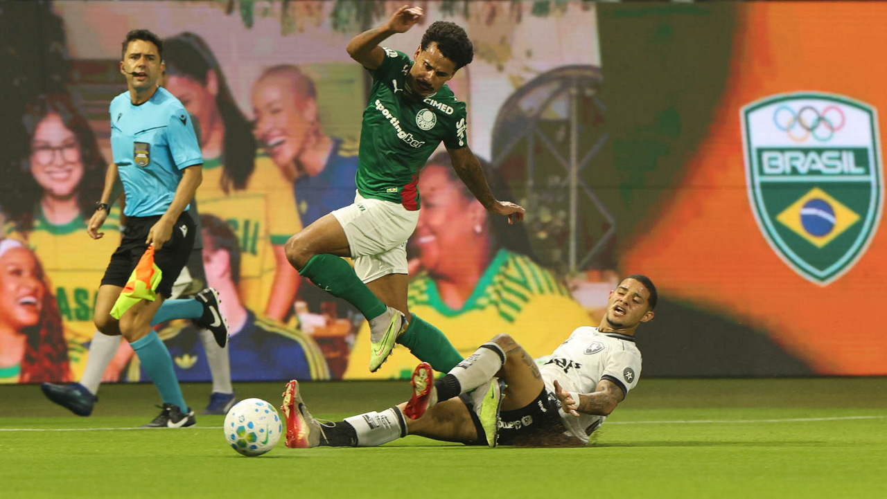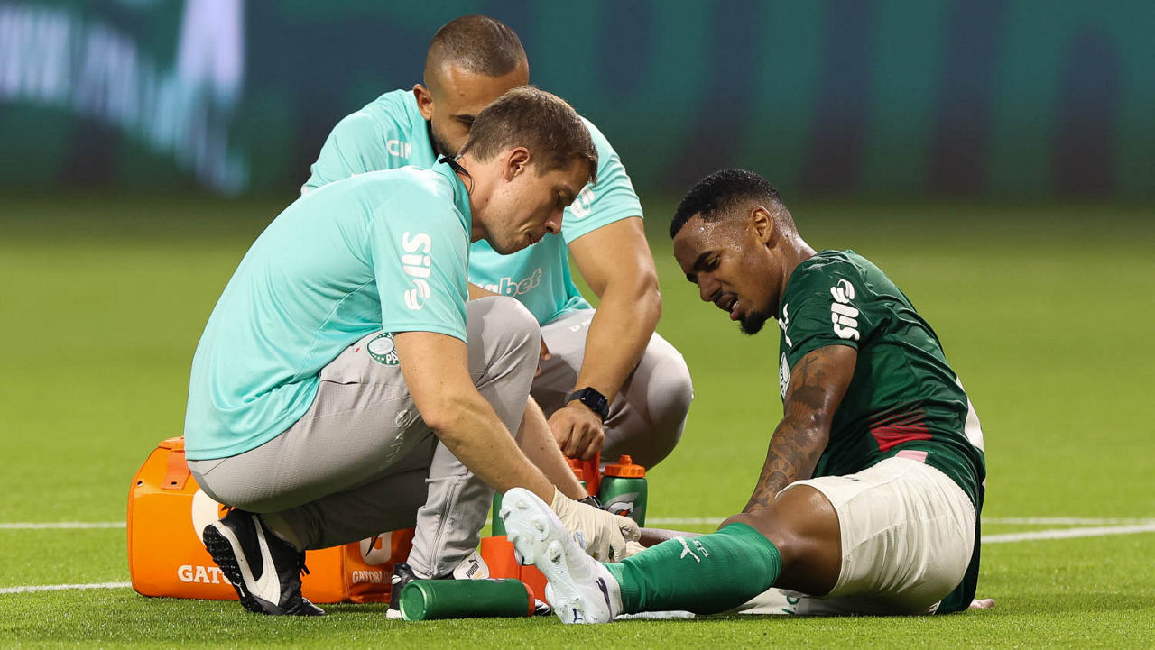 O médico Victor Soraggi, o fisioterapeuta Rodrigo Alencar e o jogador Allan (E/D), da SE Palmeiras, em jogo contra a equipe do Botafogo FR, durante partida válida pela sétima rodada, do Campeonato Brasileiro, Série A, na arena Allianz Parque. (Foto: Cesar Greco/Palmeiras/by Canon)