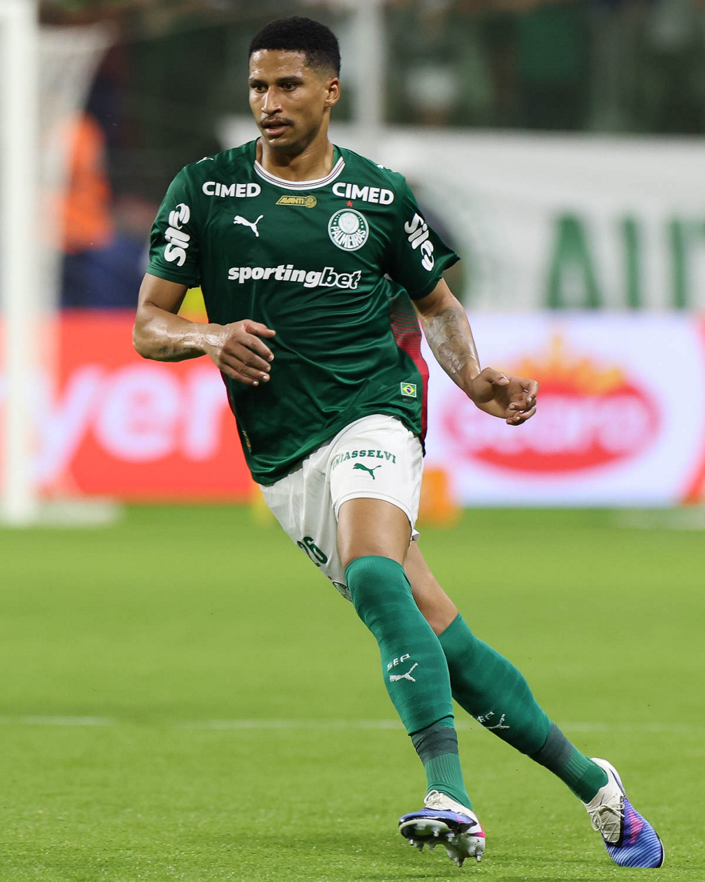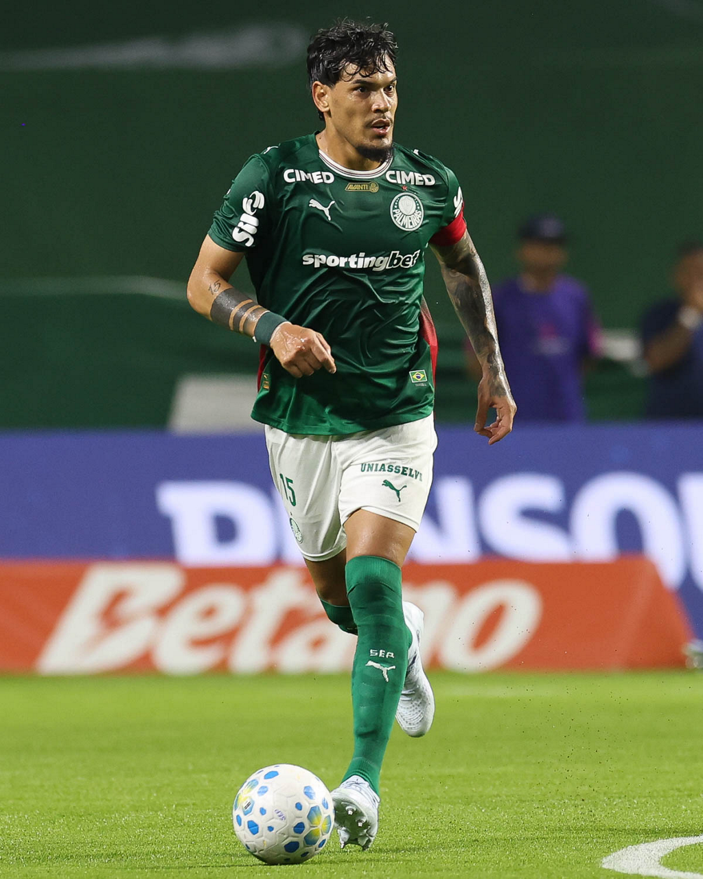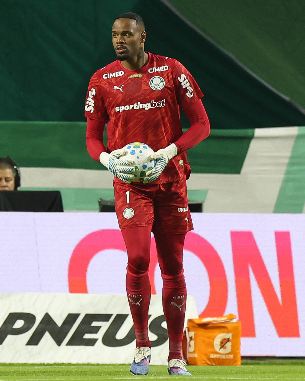 O médico Victor Soraggi, o fisioterapeuta Rodrigo Alencar e o jogador Allan (E/D), da SE Palmeiras, em jogo contra a equipe do Botafogo FR, durante partida válida pela sétima rodada, do Campeonato Brasileiro, Série A, na arena Allianz Parque. (Foto: Cesar Greco/Palmeiras/by Canon)