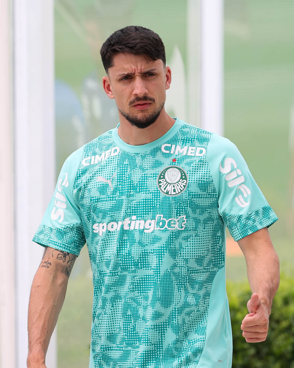 O jogador Agustín Giay, da SE Palmeiras, durante treinamento, na Academia de Futebol. (Foto: Cesar Greco/Palmeiras/by Canon)