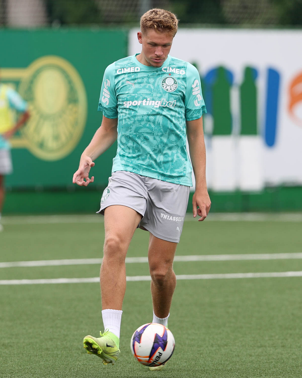 O jogador Bruno Fuchs, da SE Palmeiras, durante treinamento, na Academia de Futebol. (Foto: Cesar Greco/Palmeiras/by Canon)