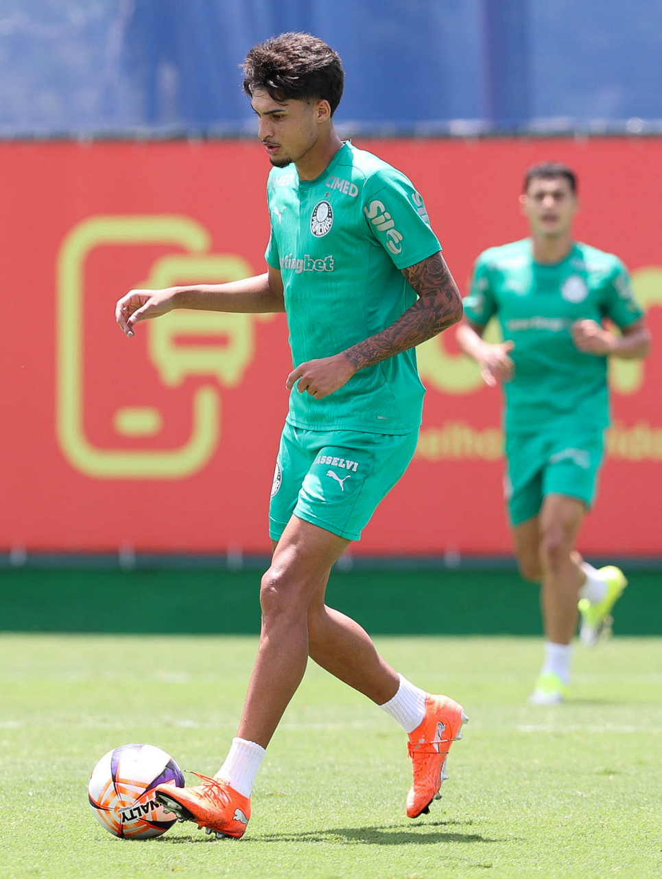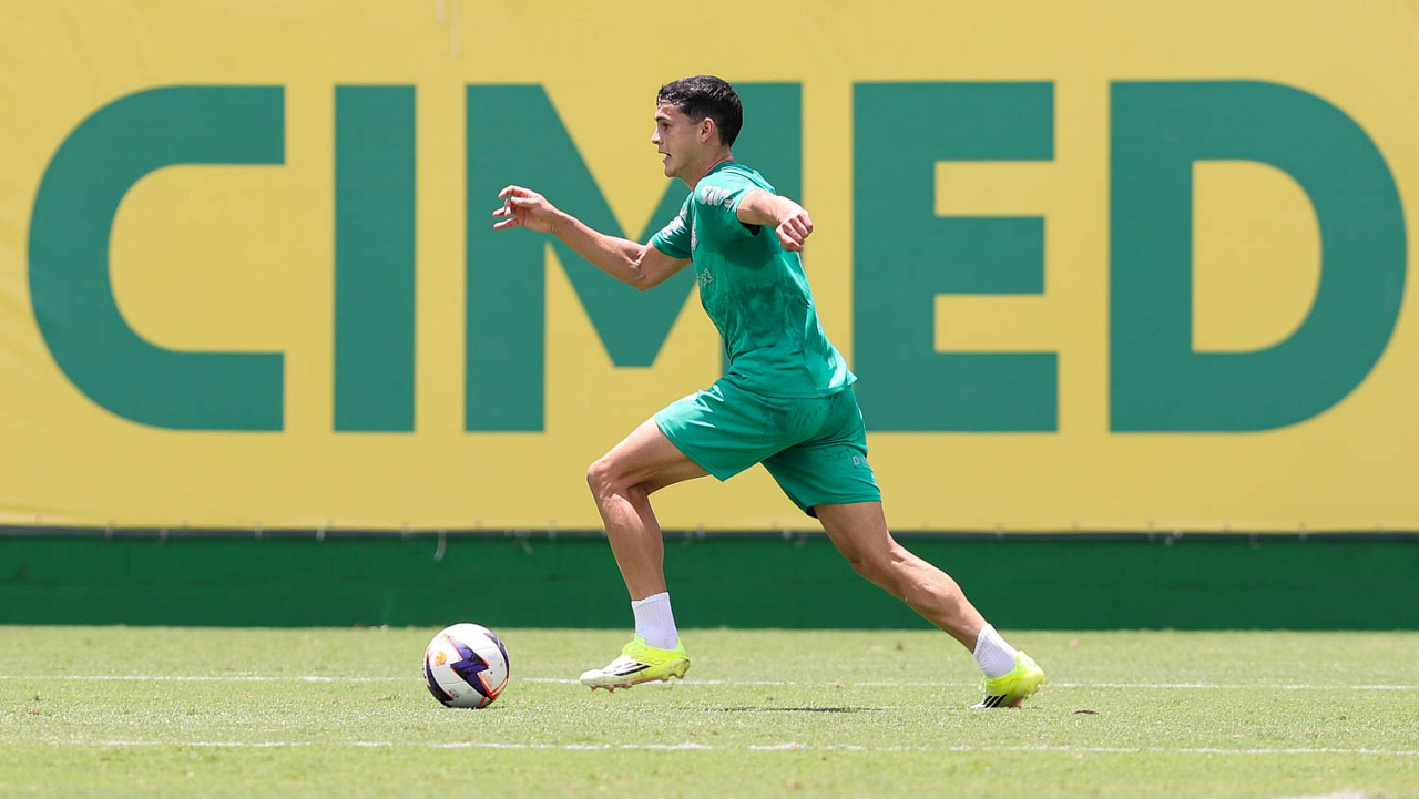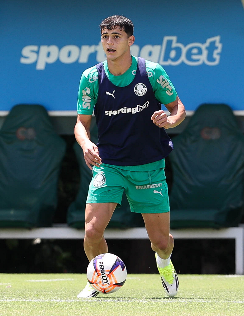 O jogador Bruno Fuchs, da SE Palmeiras, durante treinamento, na Academia de Futebol. (Foto: Cesar Greco/Palmeiras/by Canon)