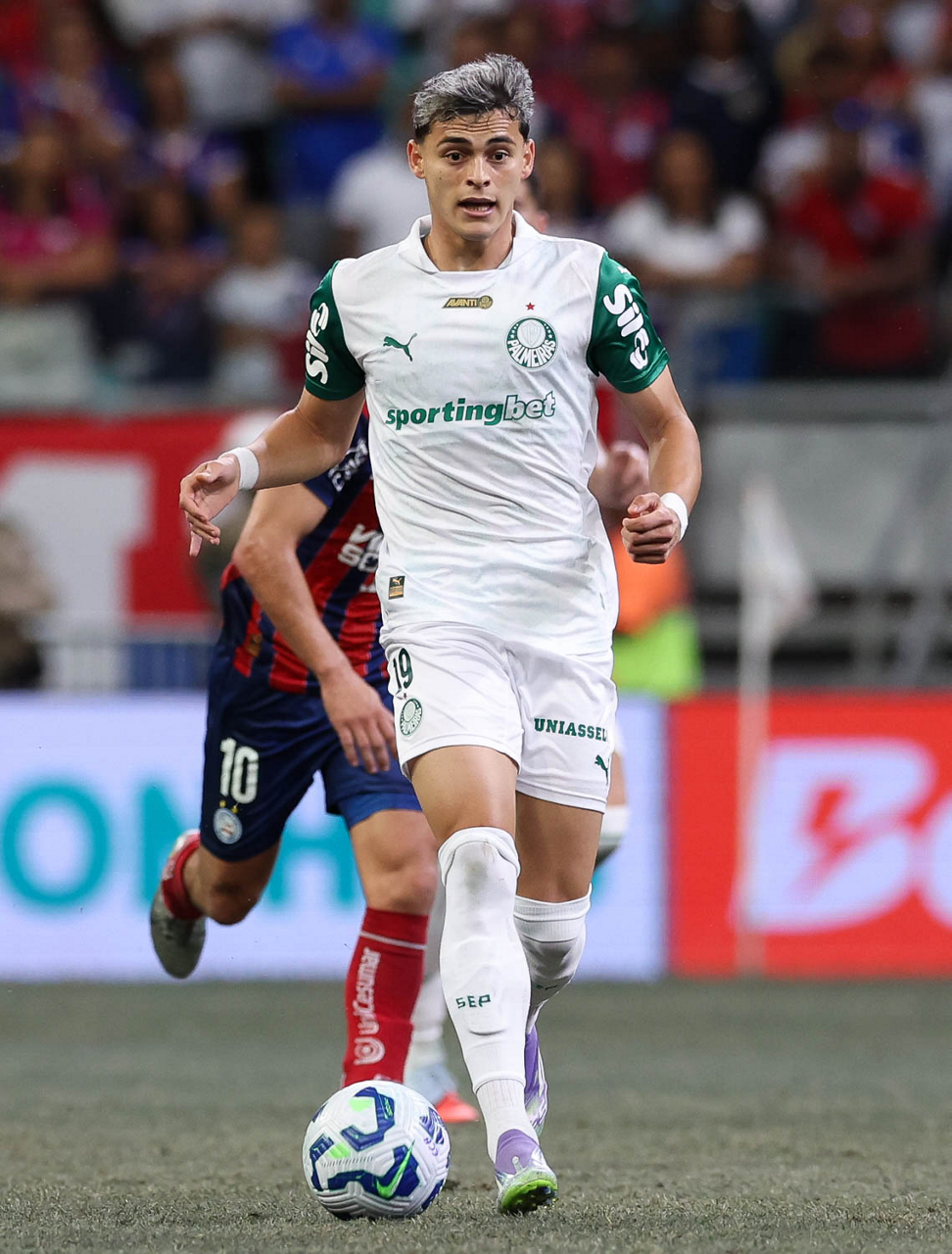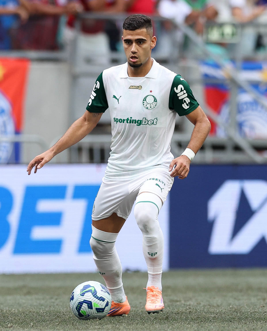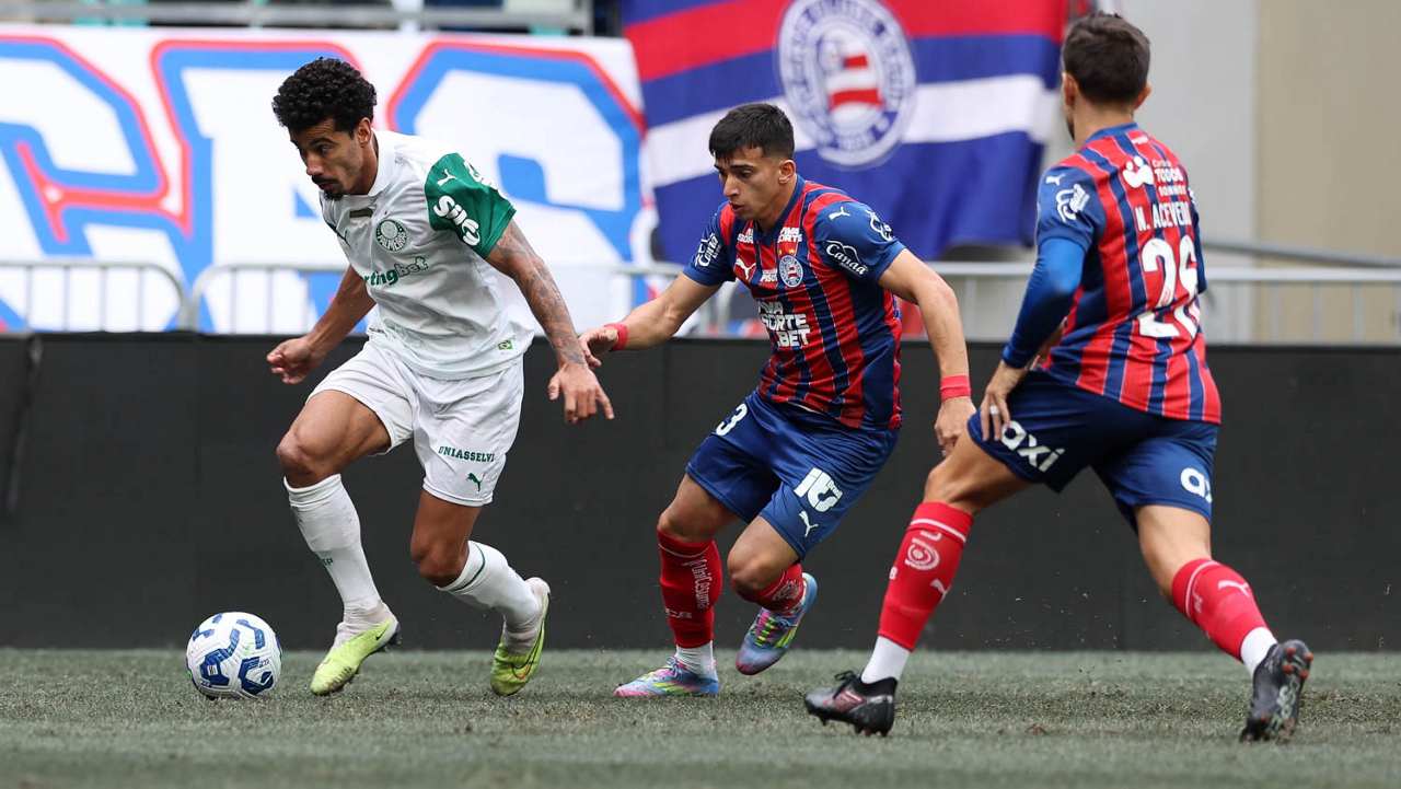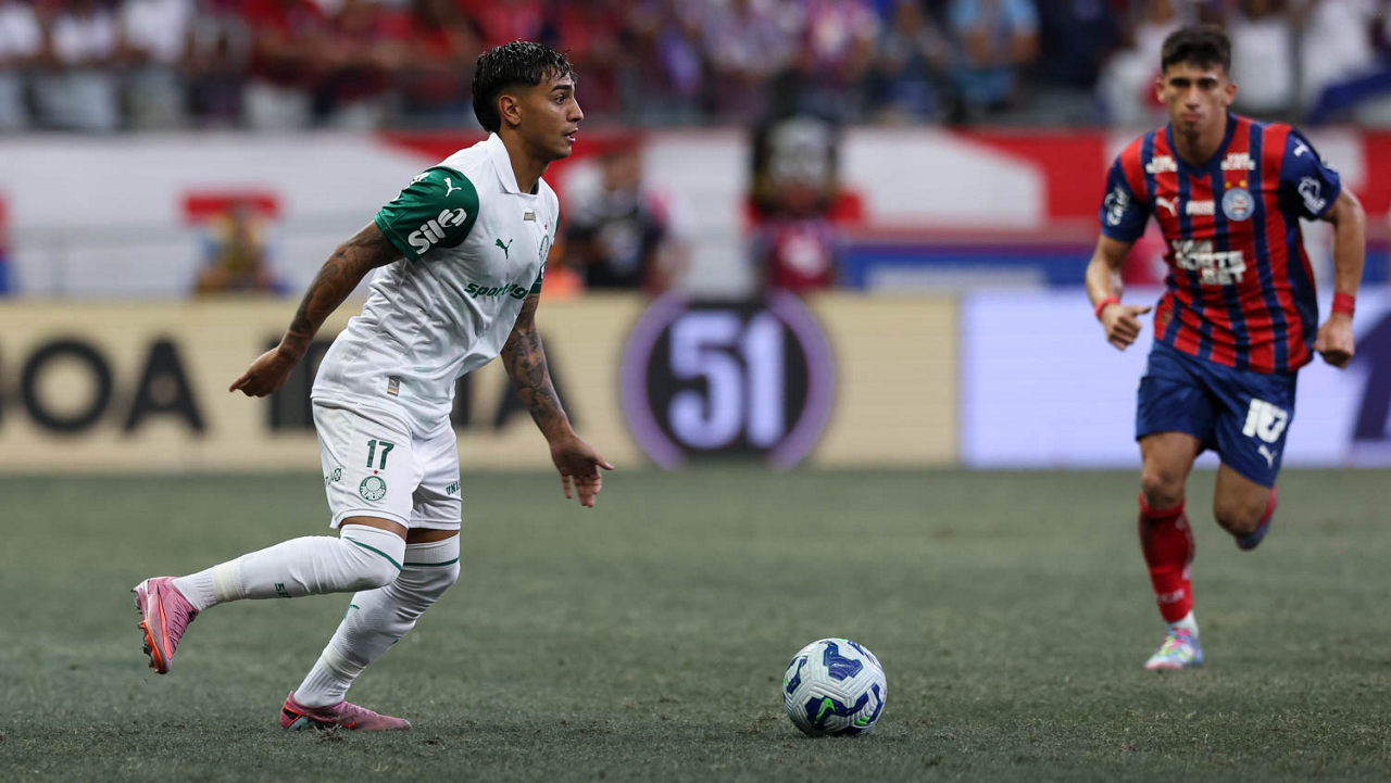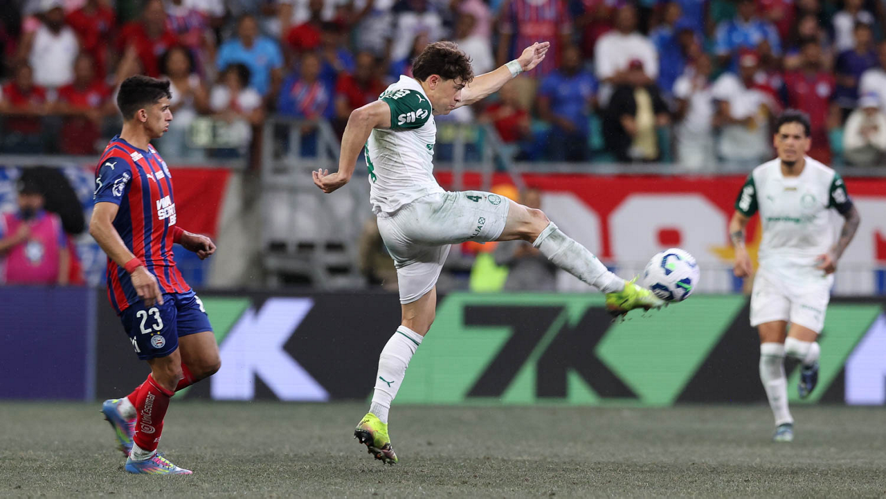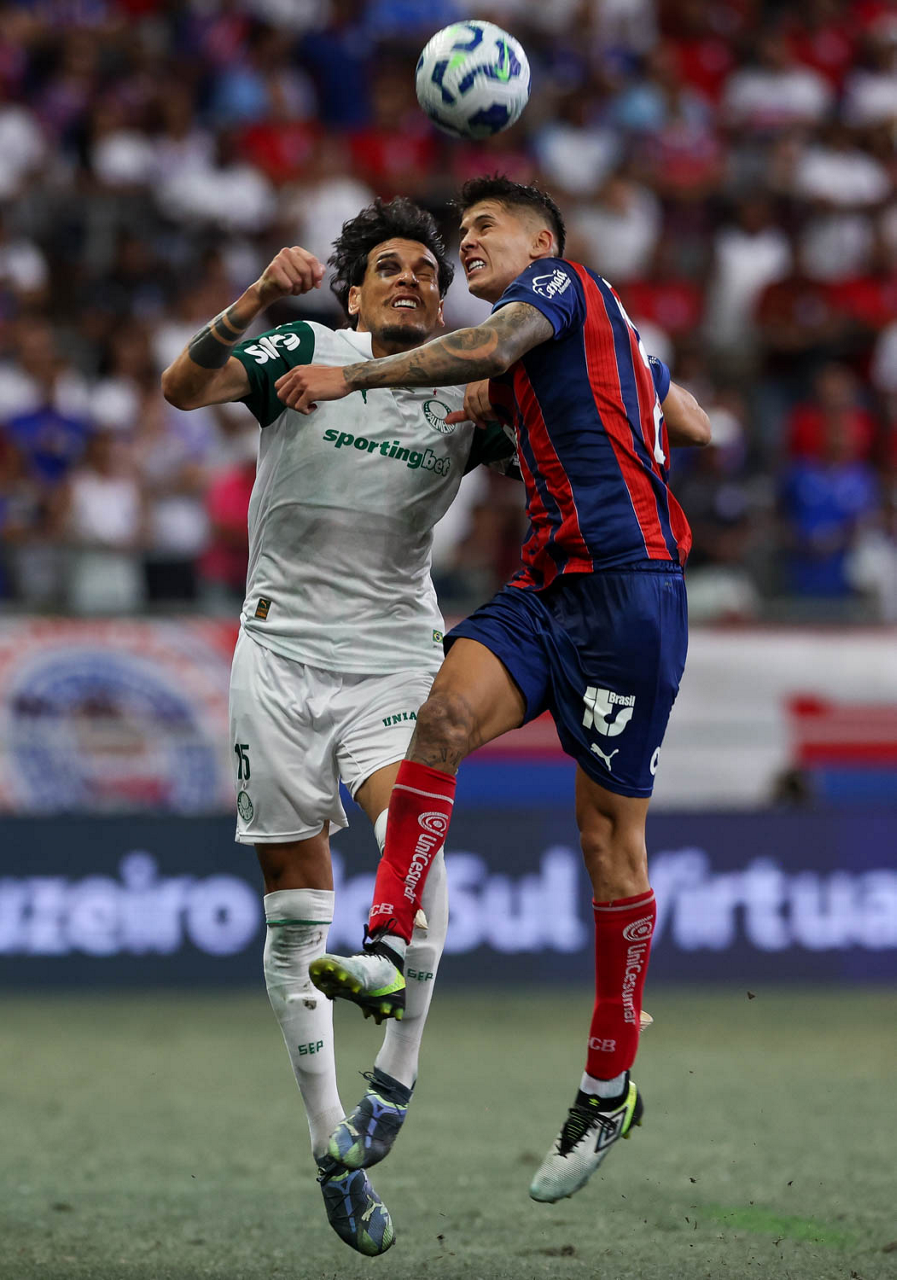 O técnico Abel Ferreira e o jogador Felipe Anderson (E), da SE Palmeiras, em jogo contra a equipe do EC Bahia, durante partida válida pela vigésima quinta rodada, do Campeonato Brasileiro, Série A, na Arena Fonte Nova. (Foto: Cesar Greco/Palmeiras/by Canon)