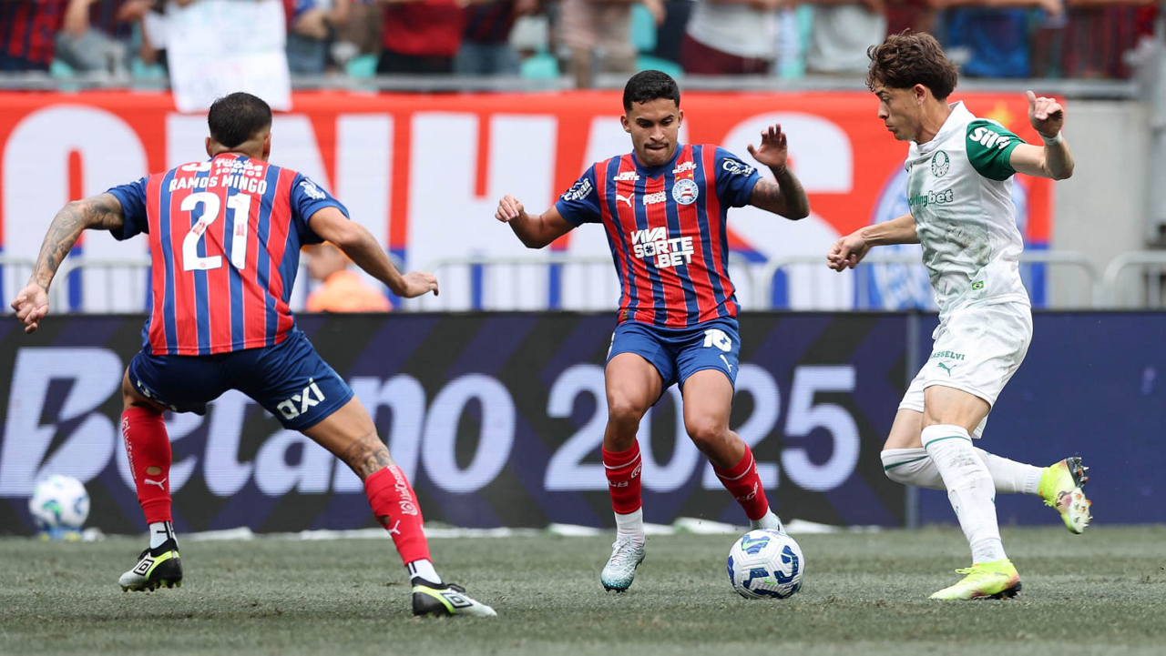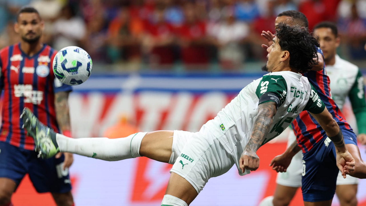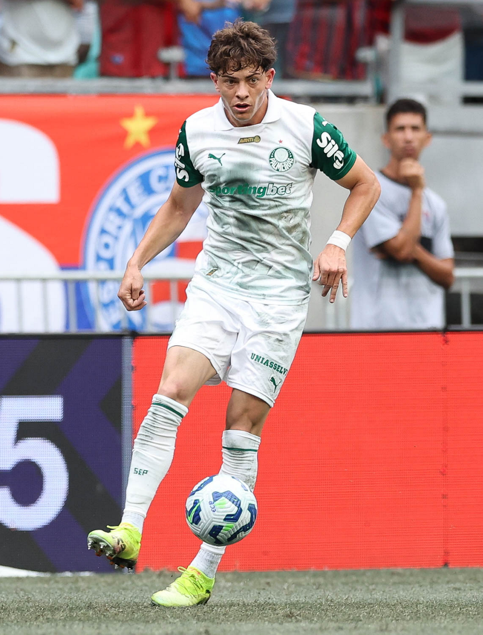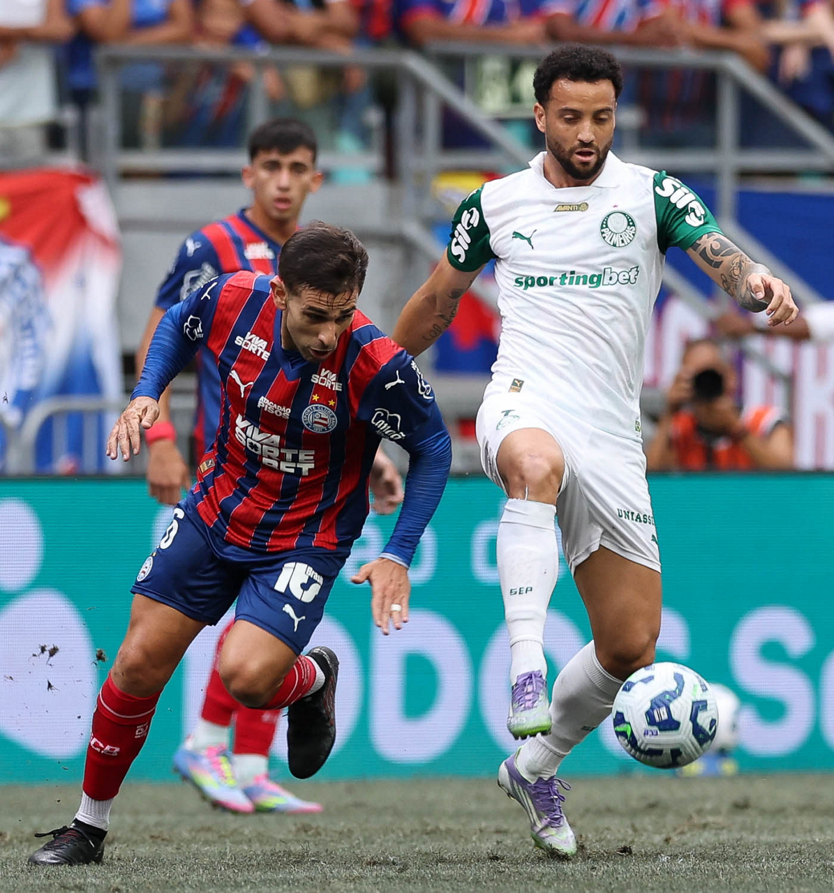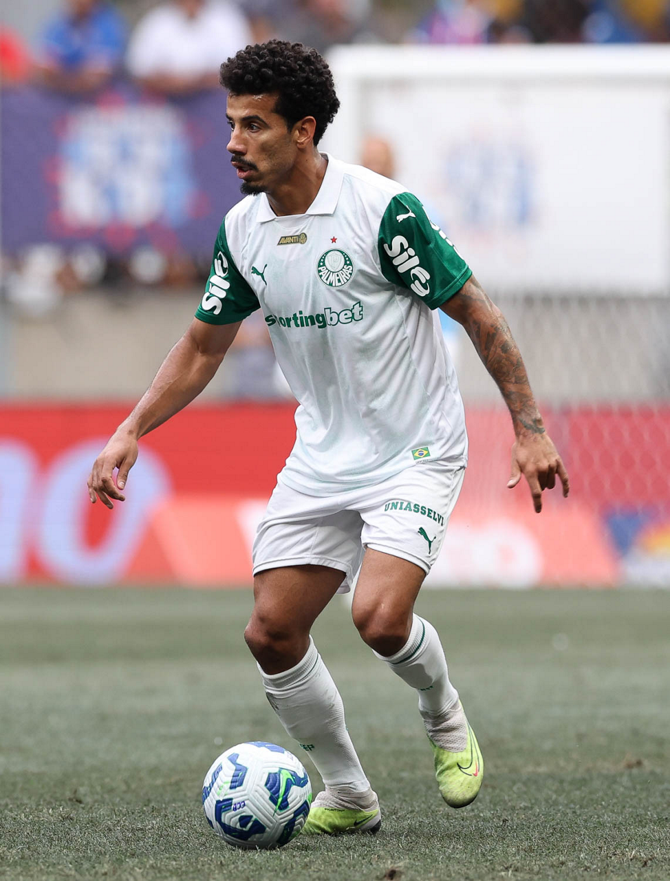 O técnico Abel Ferreira e o jogador Felipe Anderson (E), da SE Palmeiras, em jogo contra a equipe do EC Bahia, durante partida válida pela vigésima quinta rodada, do Campeonato Brasileiro, Série A, na Arena Fonte Nova. (Foto: Cesar Greco/Palmeiras/by Canon)