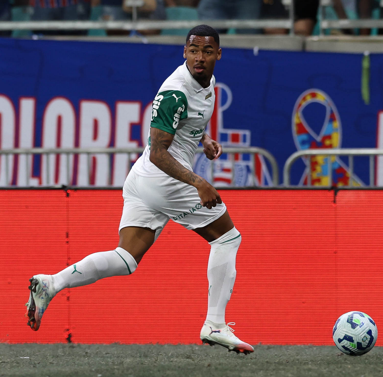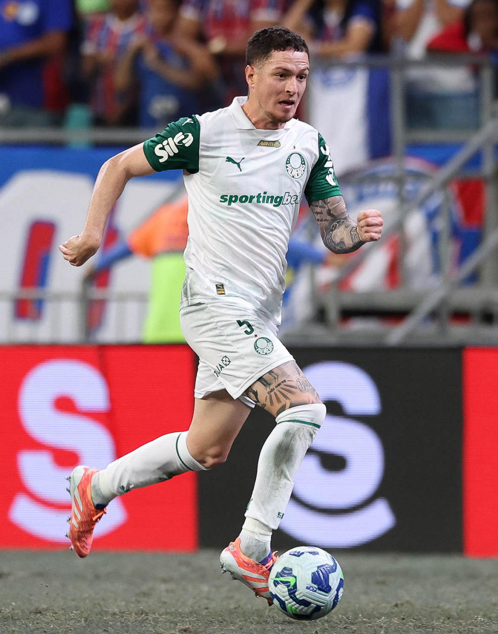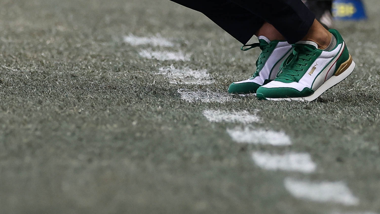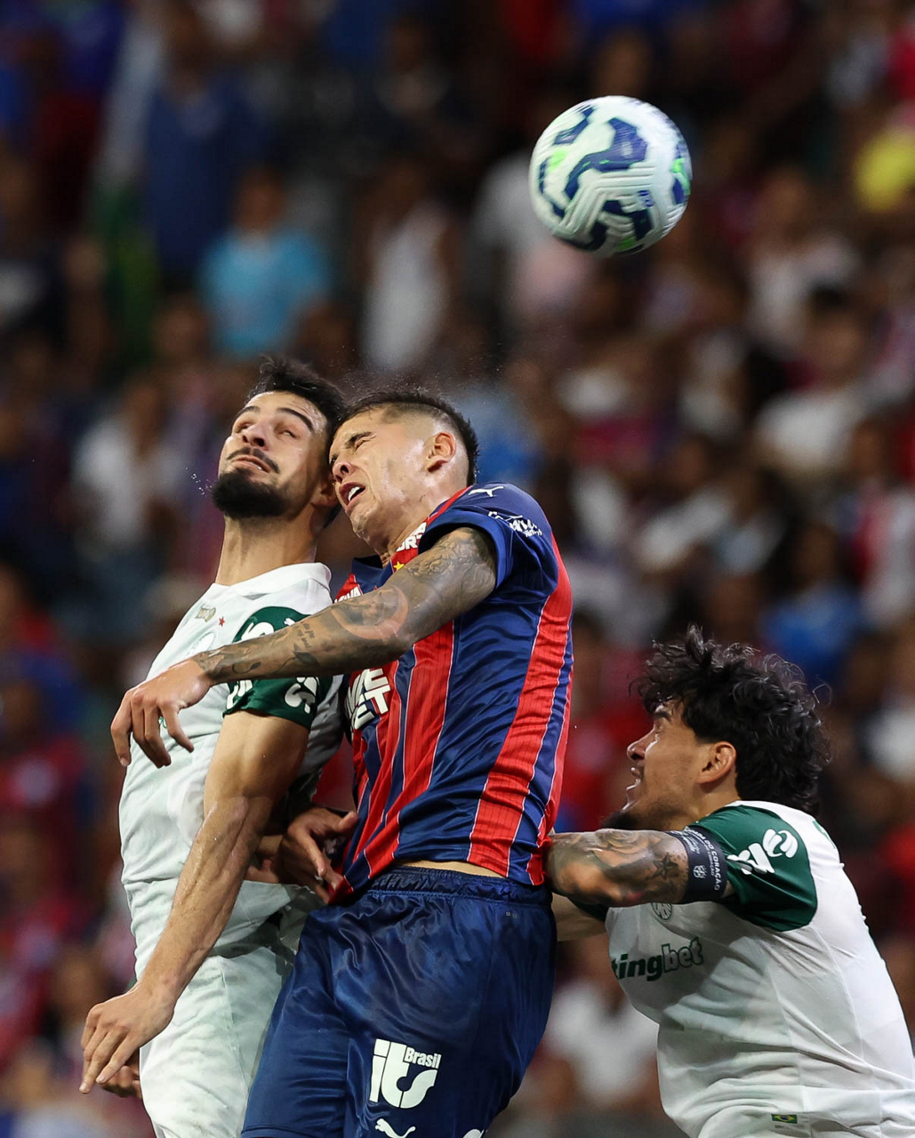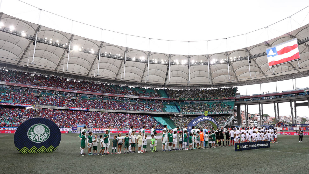 O técnico Abel Ferreira e o jogador Felipe Anderson (E), da SE Palmeiras, em jogo contra a equipe do EC Bahia, durante partida válida pela vigésima quinta rodada, do Campeonato Brasileiro, Série A, na Arena Fonte Nova. (Foto: Cesar Greco/Palmeiras/by Canon)