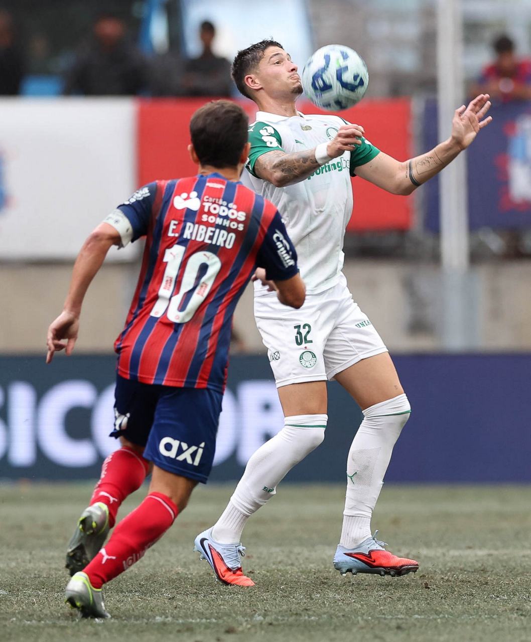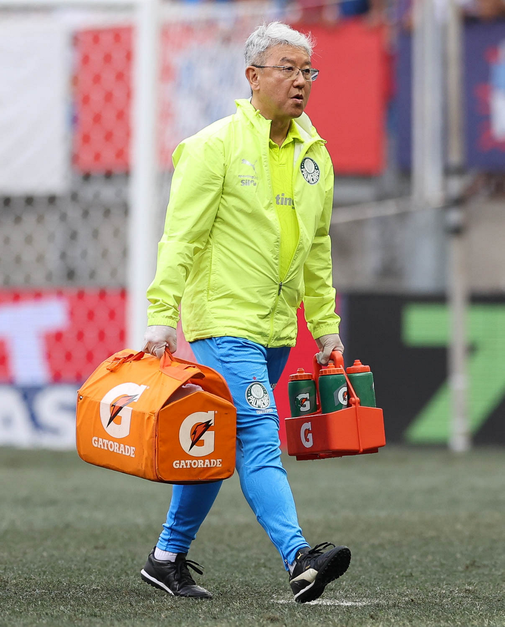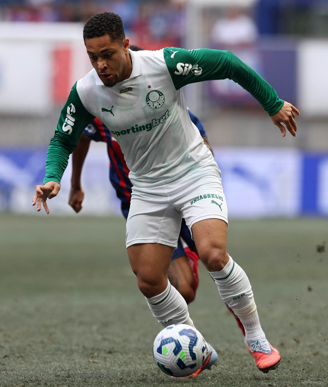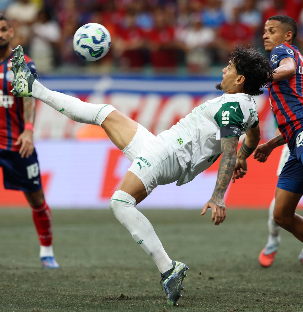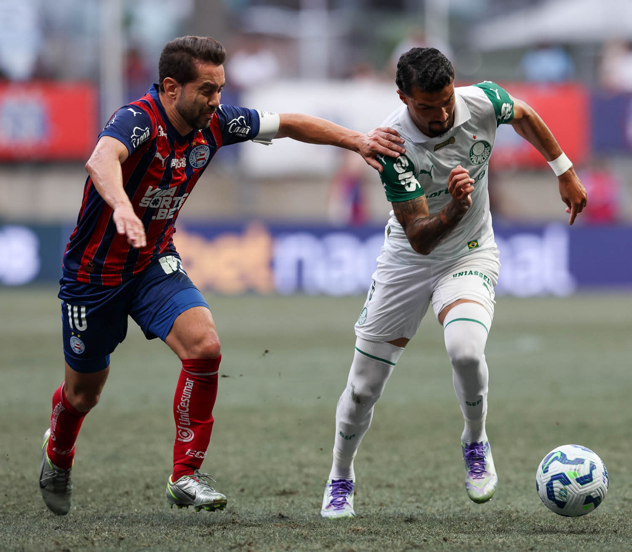 O técnico Abel Ferreira e o jogador Felipe Anderson (E), da SE Palmeiras, em jogo contra a equipe do EC Bahia, durante partida válida pela vigésima quinta rodada, do Campeonato Brasileiro, Série A, na Arena Fonte Nova. (Foto: Cesar Greco/Palmeiras/by Canon)