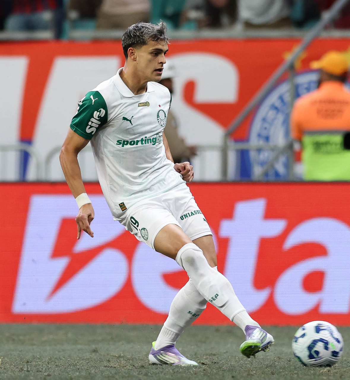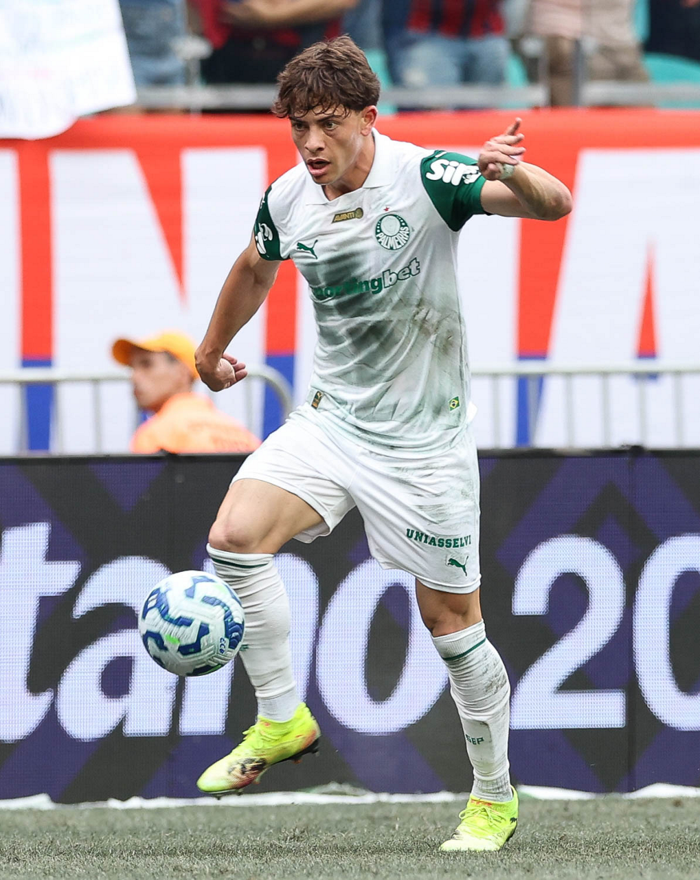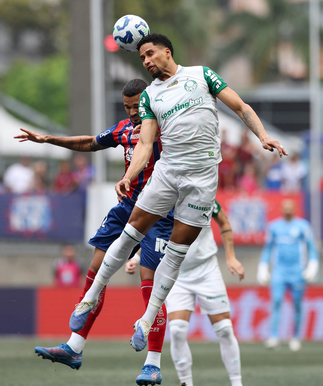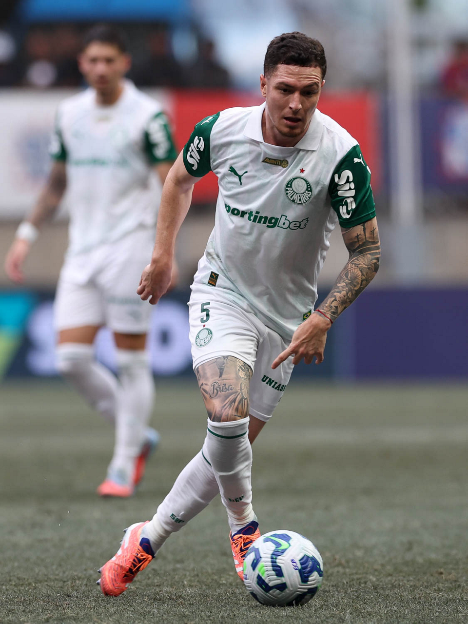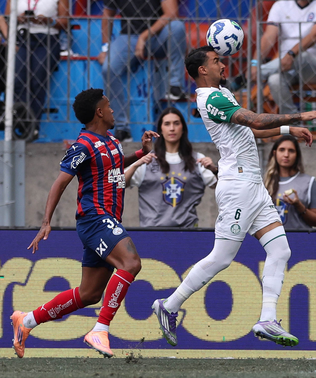 O técnico Abel Ferreira e o jogador Felipe Anderson (E), da SE Palmeiras, em jogo contra a equipe do EC Bahia, durante partida válida pela vigésima quinta rodada, do Campeonato Brasileiro, Série A, na Arena Fonte Nova. (Foto: Cesar Greco/Palmeiras/by Canon)