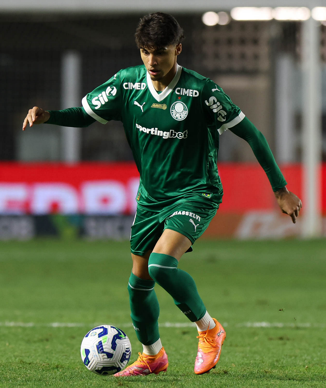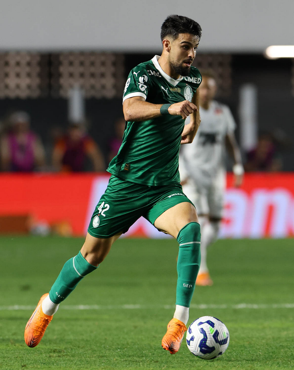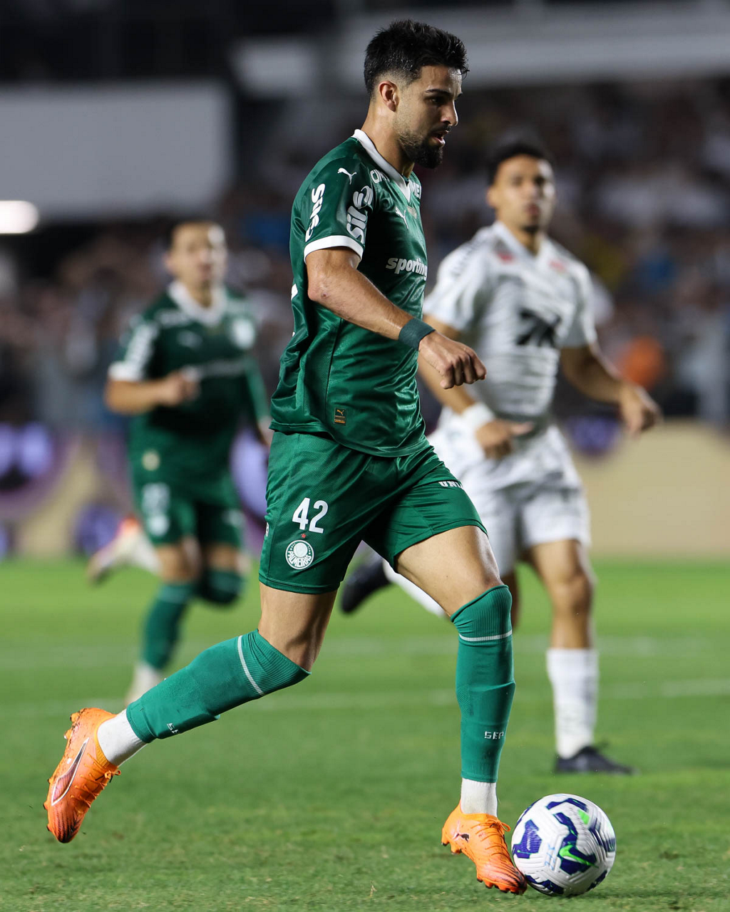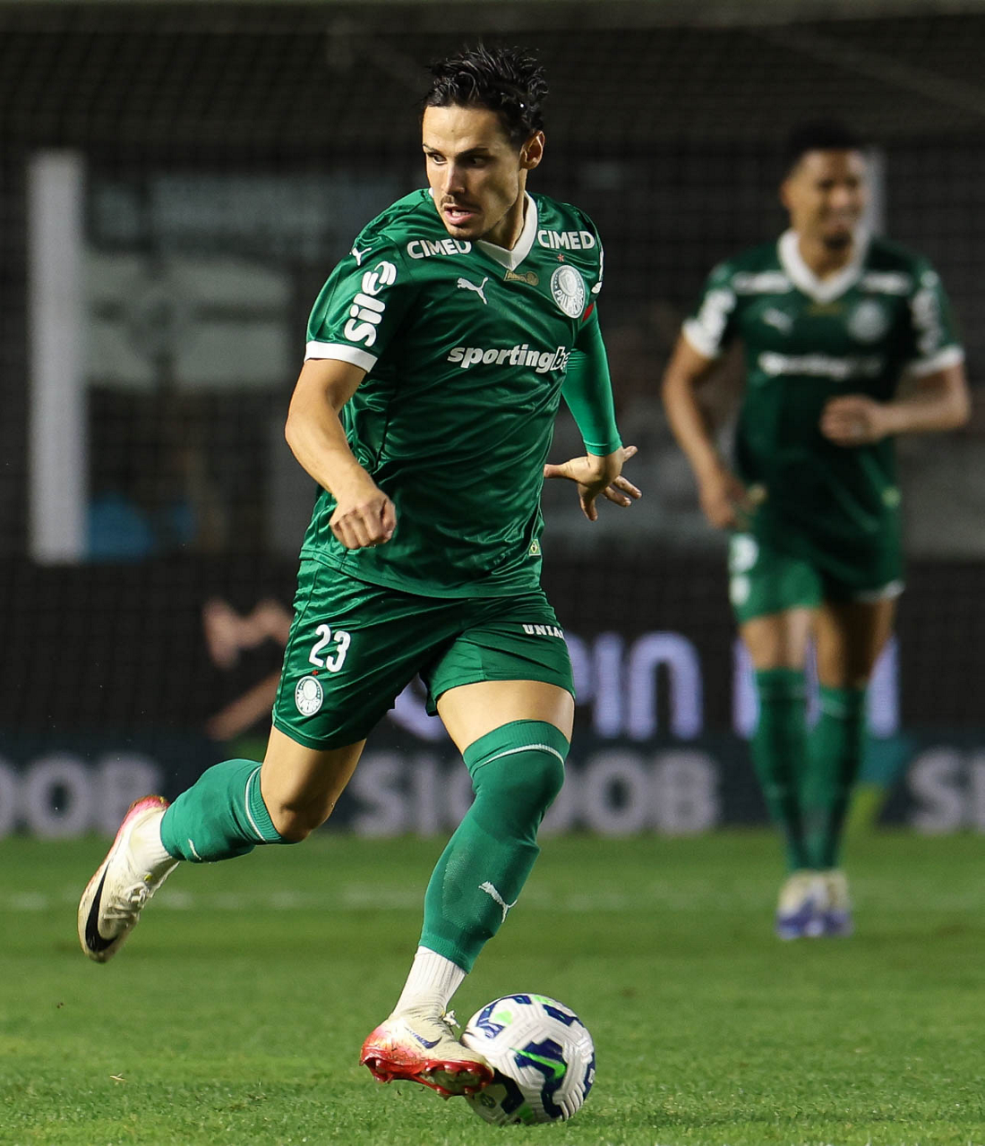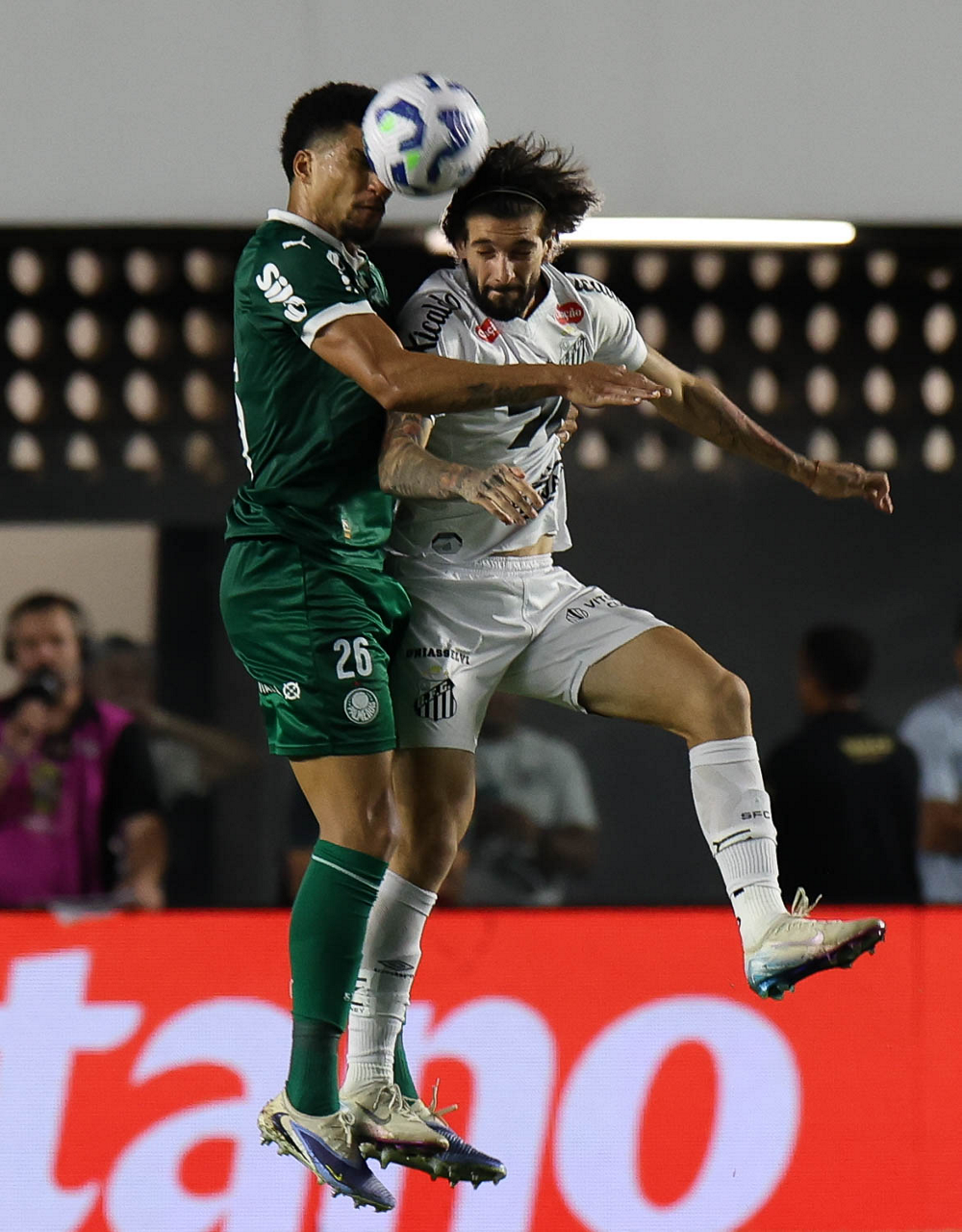 O técnico Abel Ferreira e o jogador Felipe Anderson (E), da SE Palmeiras, em jogo contra a equipe do Santos FC, durante partida válida pela décima terceira rodada, do Campeonato Brasileiro, Série A, no Estádio Vila Belmiro. (Foto: Cesar Greco/Palmeiras/by Canon)