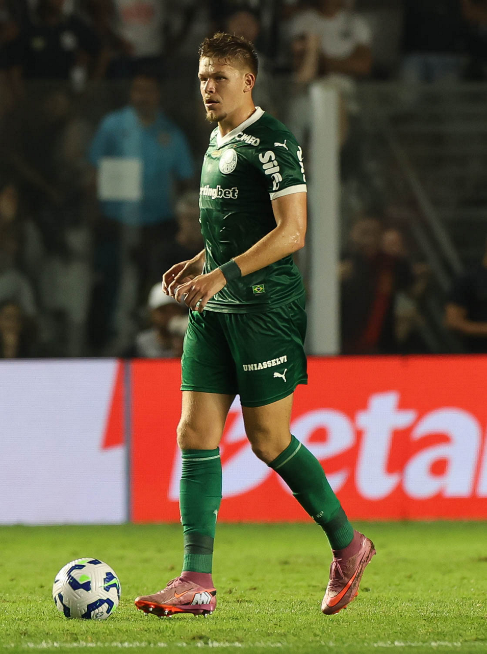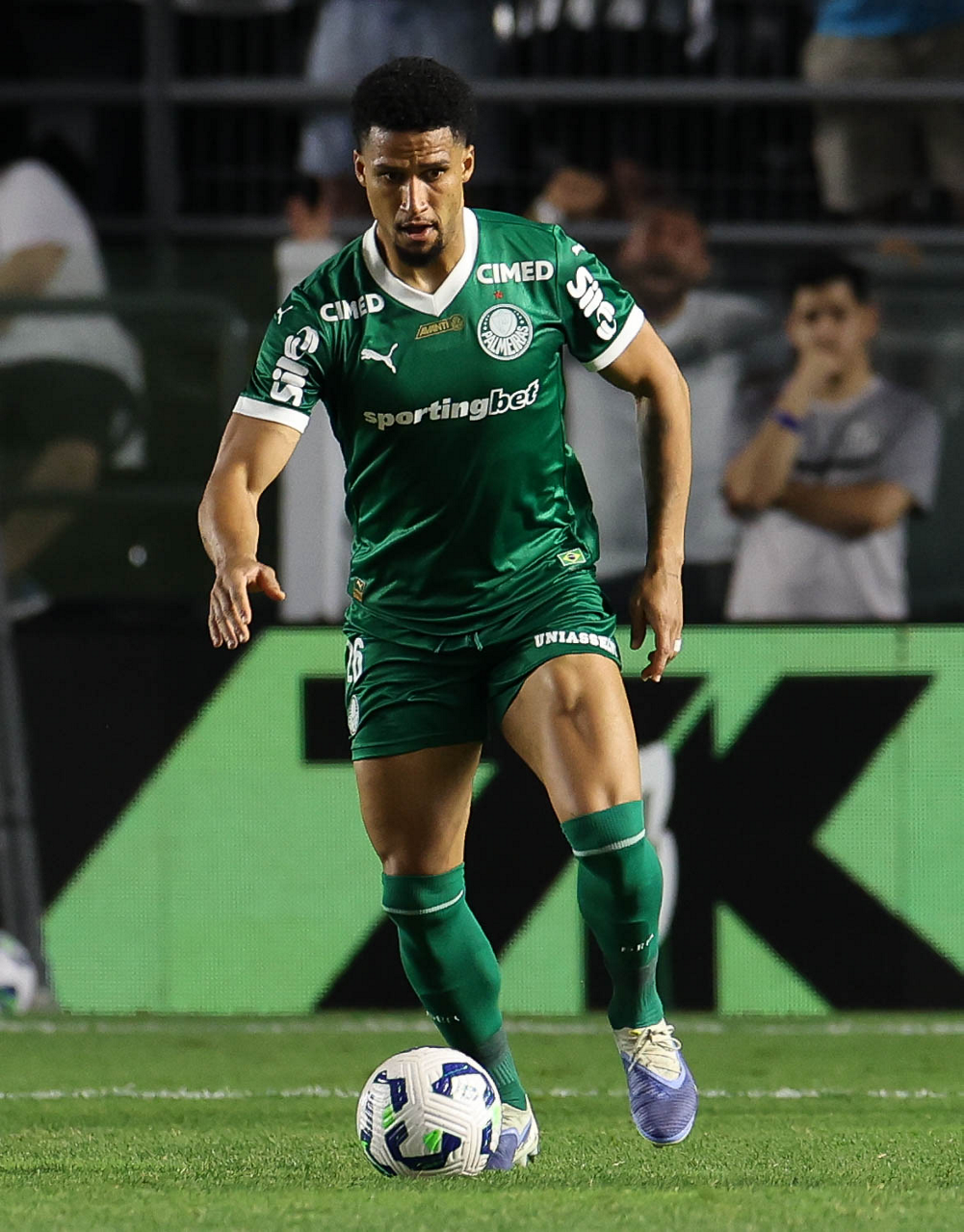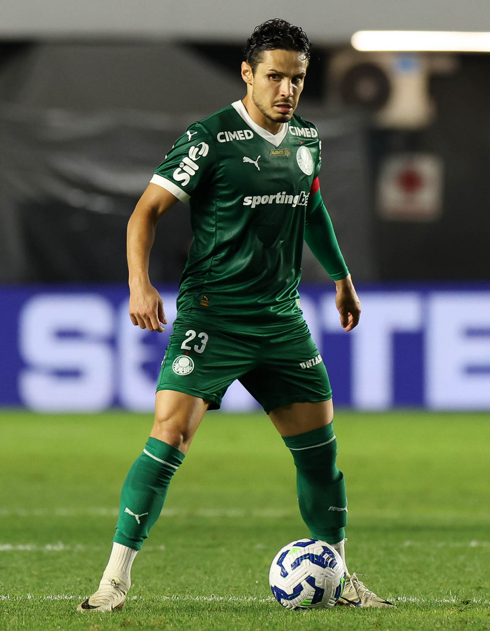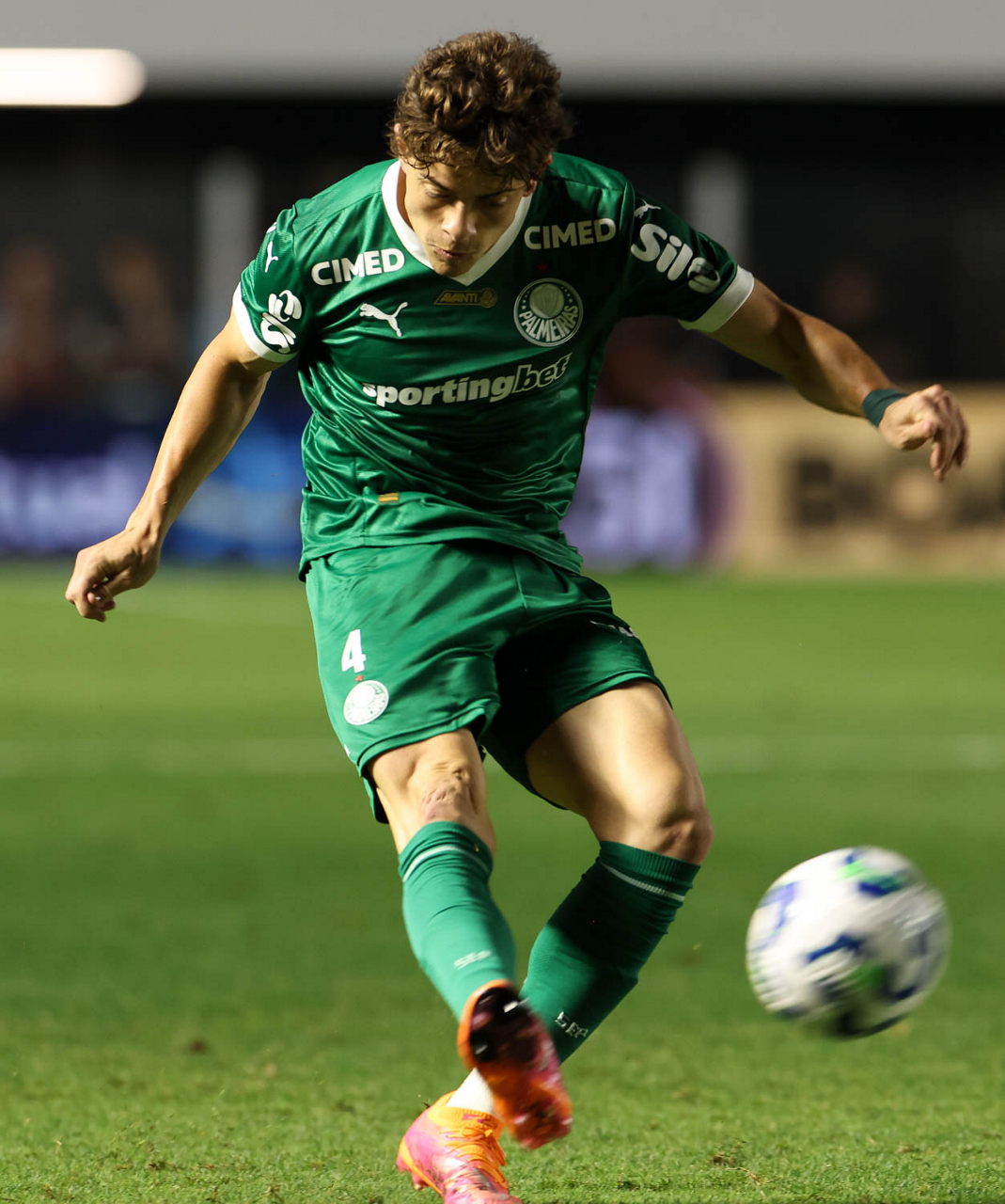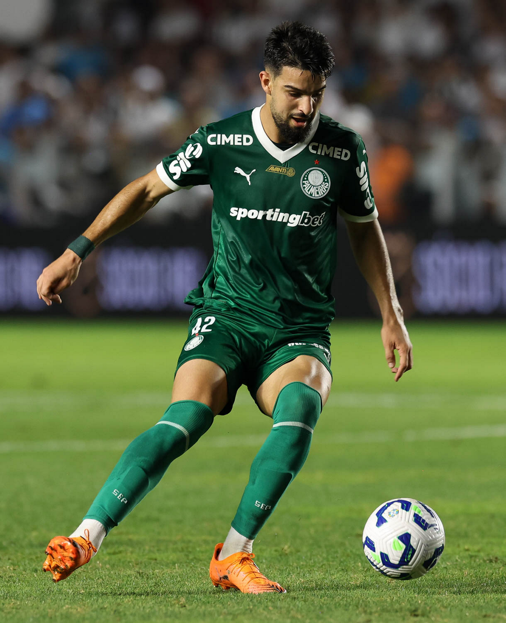 O técnico Abel Ferreira e o jogador Felipe Anderson (E), da SE Palmeiras, em jogo contra a equipe do Santos FC, durante partida válida pela décima terceira rodada, do Campeonato Brasileiro, Série A, no Estádio Vila Belmiro. (Foto: Cesar Greco/Palmeiras/by Canon)