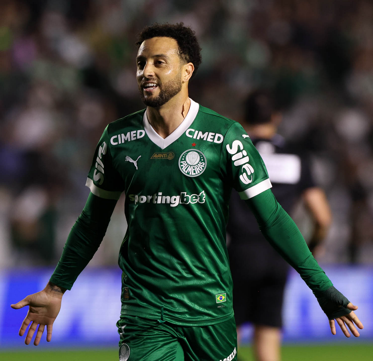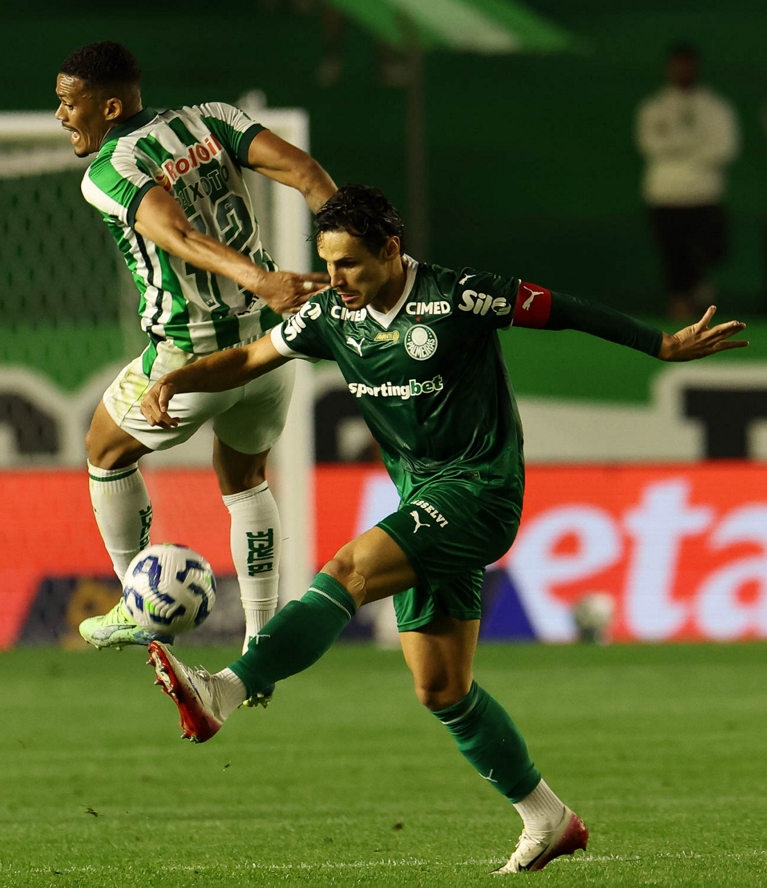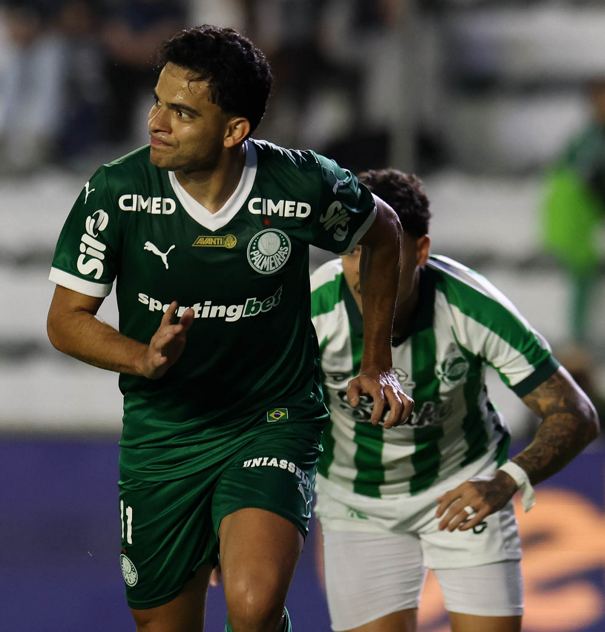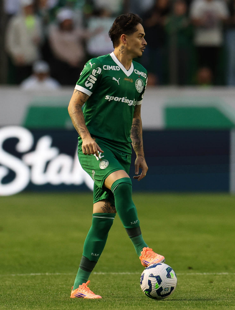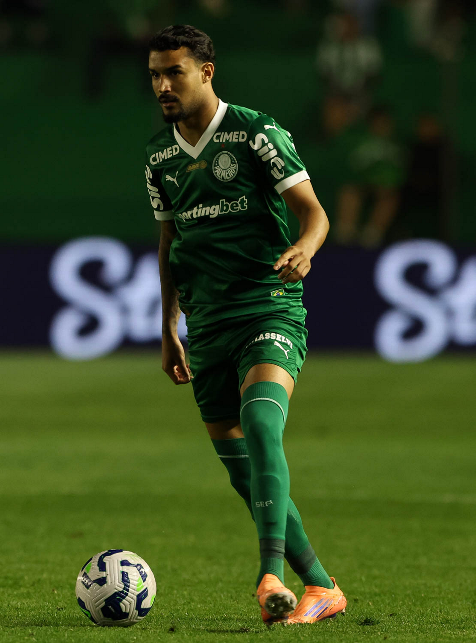 O jogador Felipe Anderson, da SE Palmeiras, chuta para marcar seu gol contra a equipe do EC Juventude, durante partida válida pela trigésima primeira rodada, do Campeonato Brasileiro, Série A, no Estádio Alfredo Jaconi. (Foto: Cesar Greco/Palmeiras/by Canon)