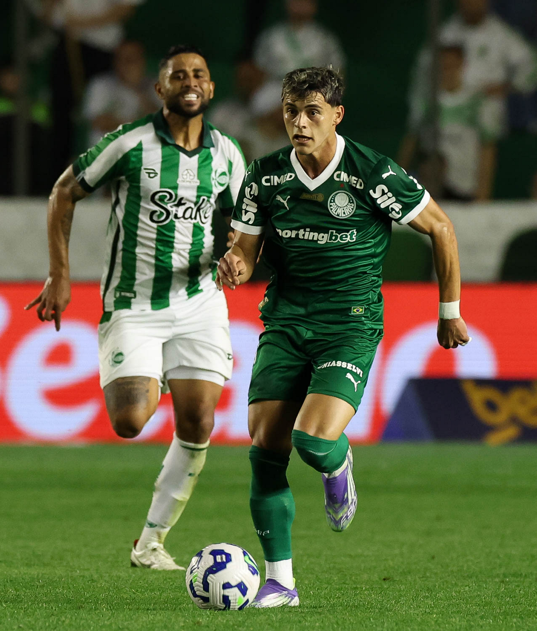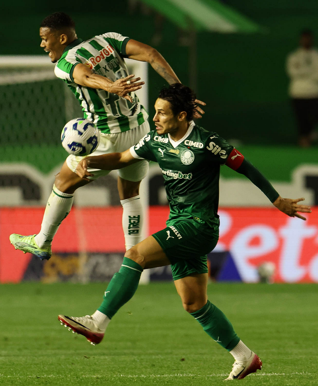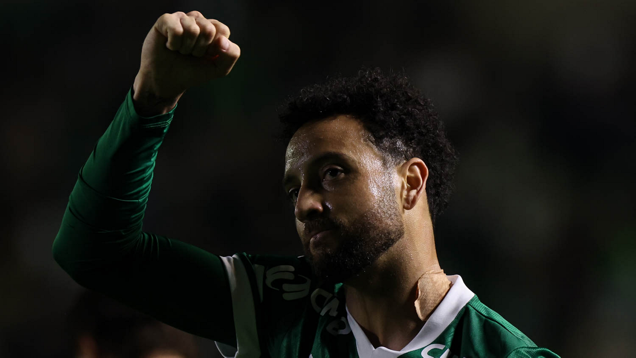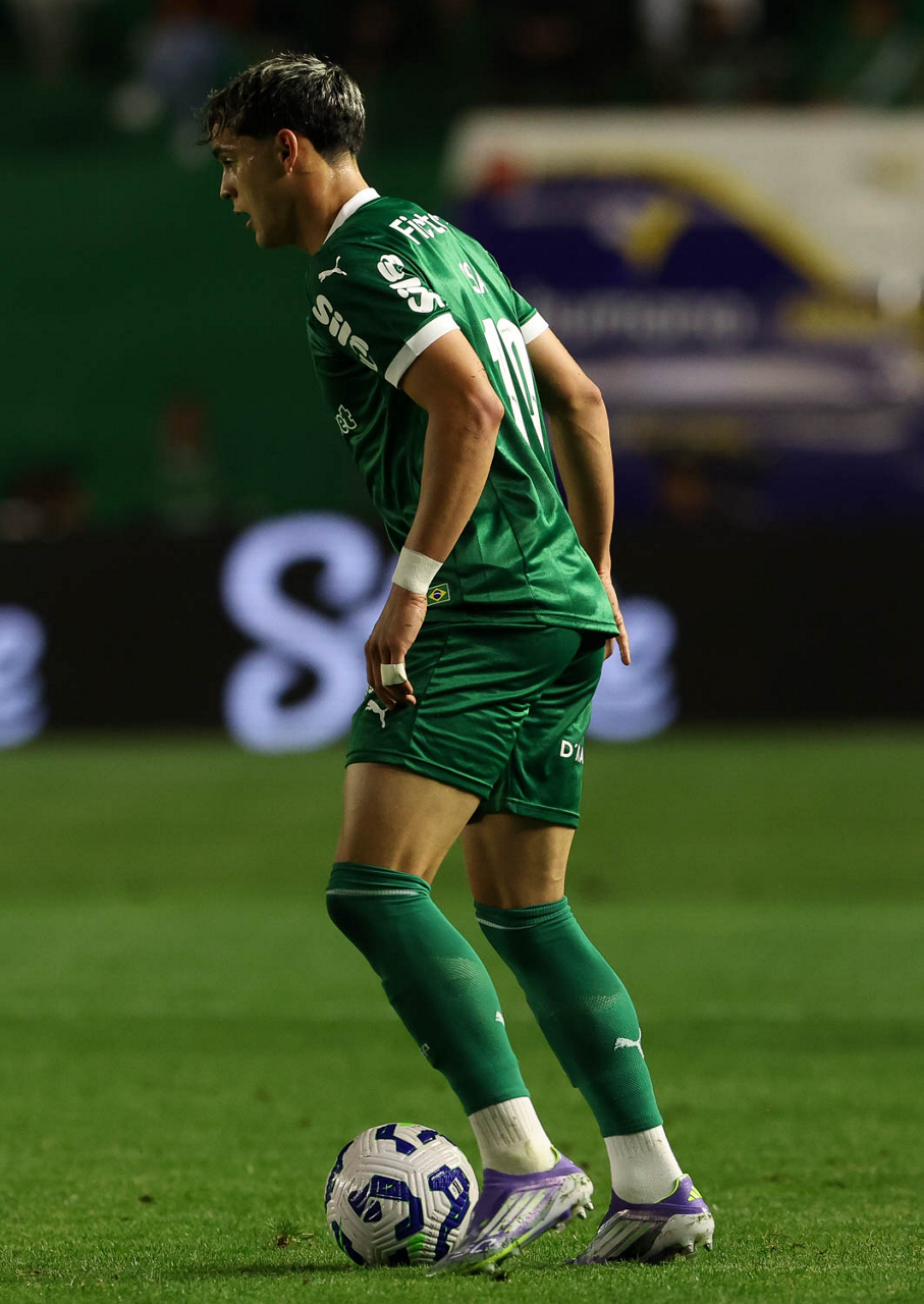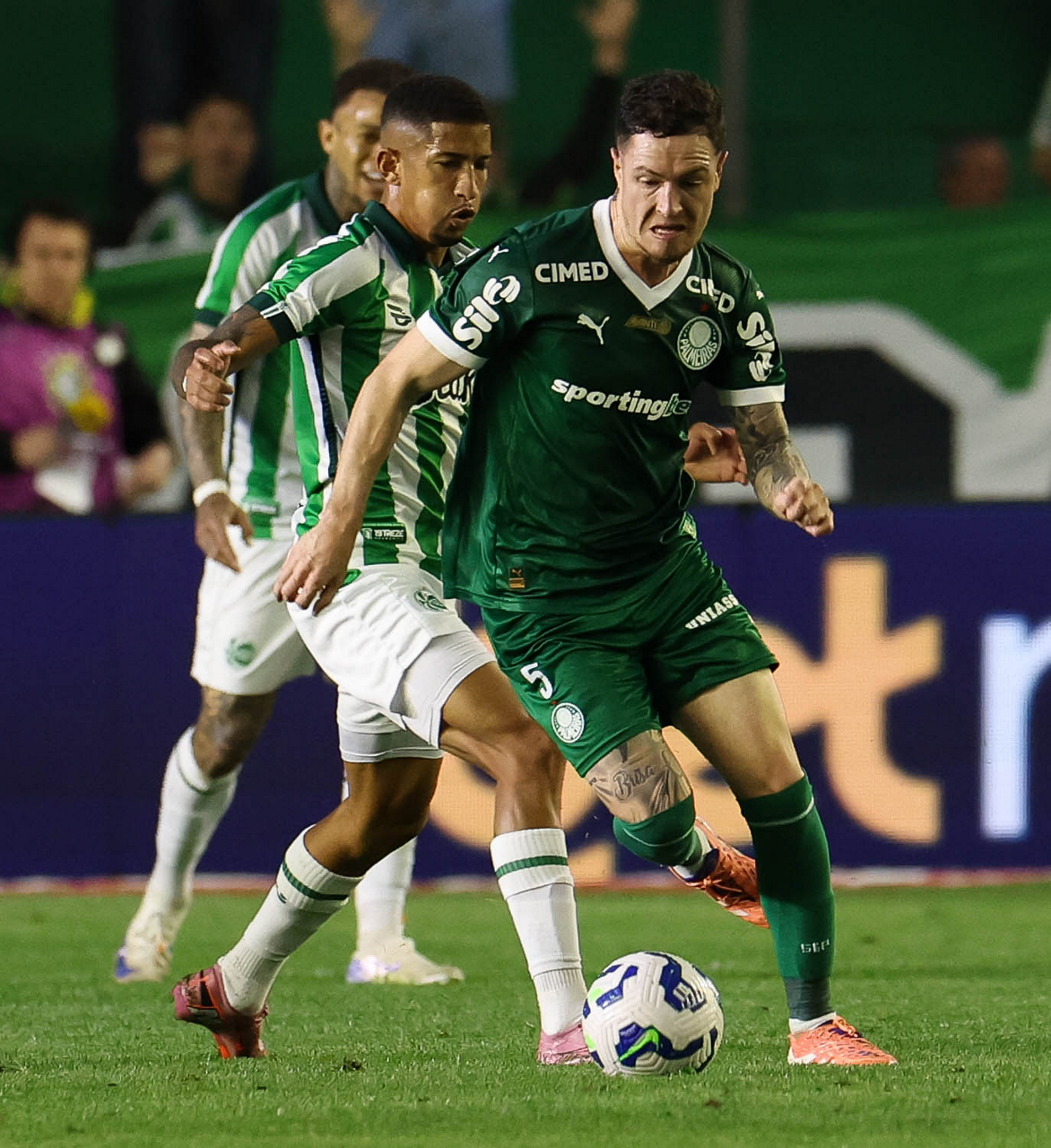 O jogador Felipe Anderson, da SE Palmeiras, chuta para marcar seu gol contra a equipe do EC Juventude, durante partida válida pela trigésima primeira rodada, do Campeonato Brasileiro, Série A, no Estádio Alfredo Jaconi. (Foto: Cesar Greco/Palmeiras/by Canon)