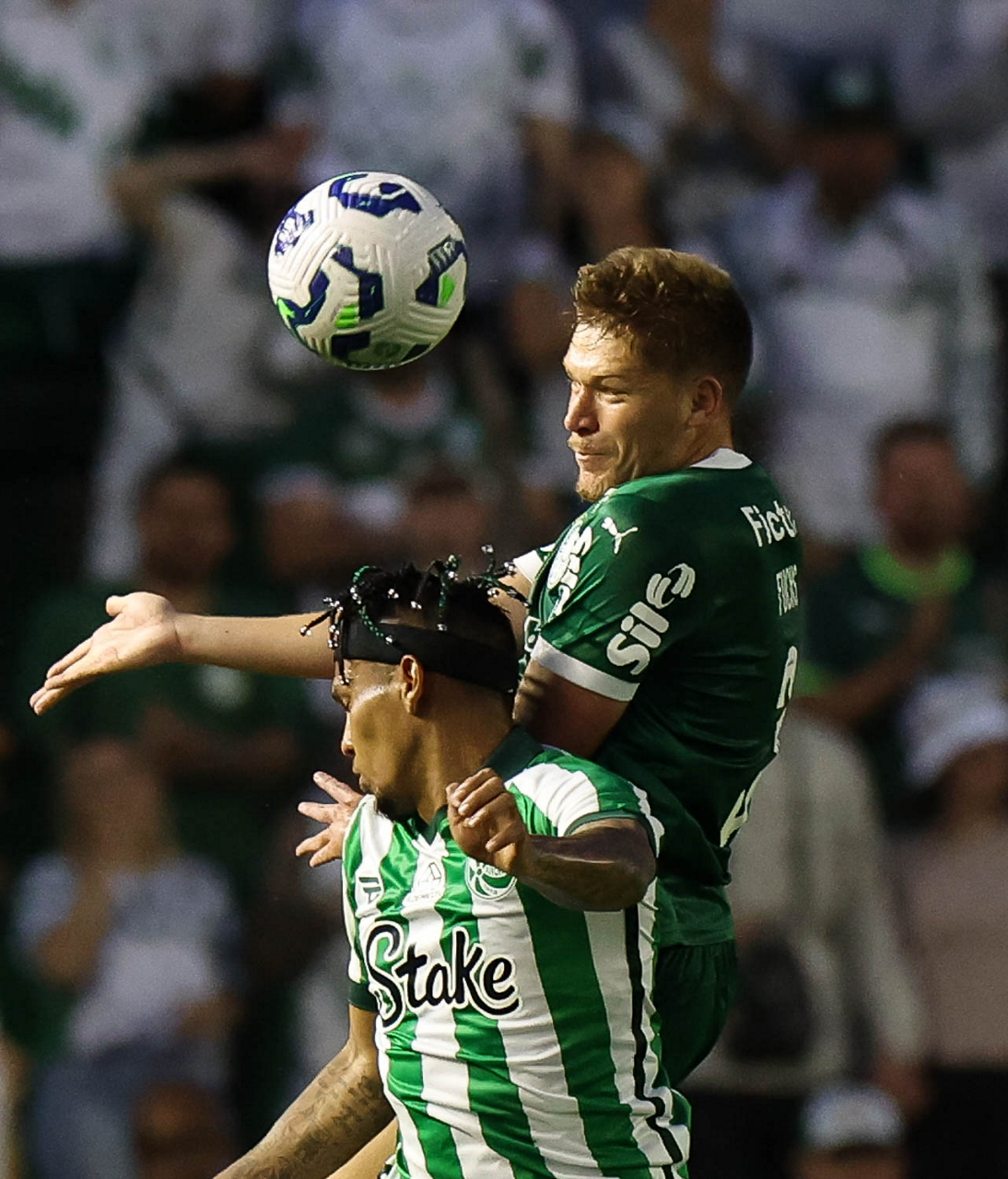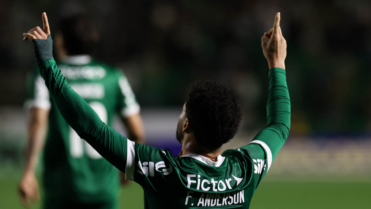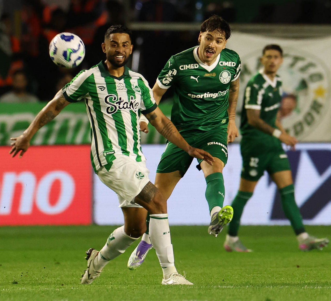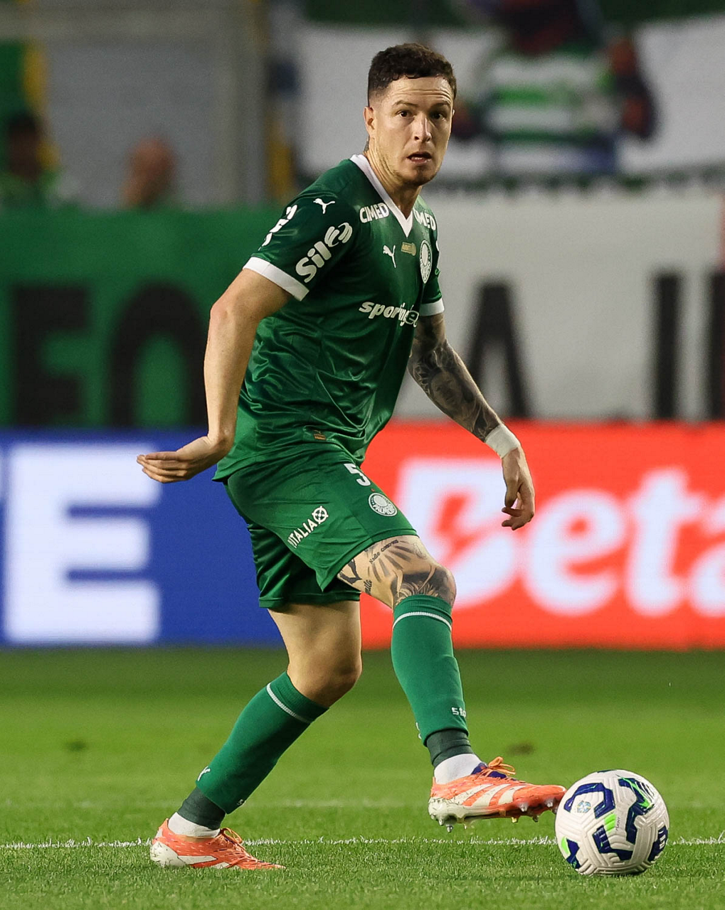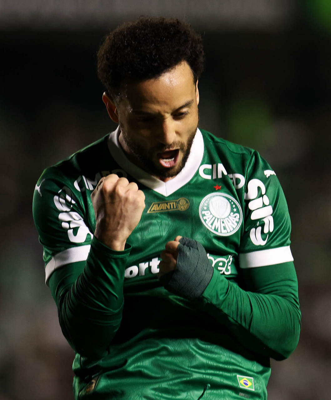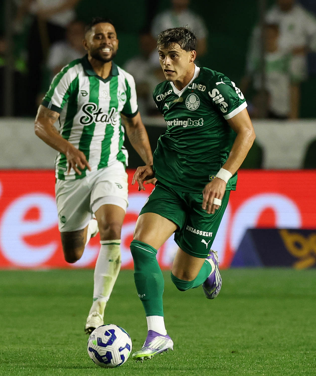O jogador Felipe Anderson, da SE Palmeiras, chuta para marcar seu gol contra a equipe do EC Juventude, durante partida válida pela trigésima primeira rodada, do Campeonato Brasileiro, Série A, no Estádio Alfredo Jaconi. (Foto: Cesar Greco/Palmeiras/by Canon)
