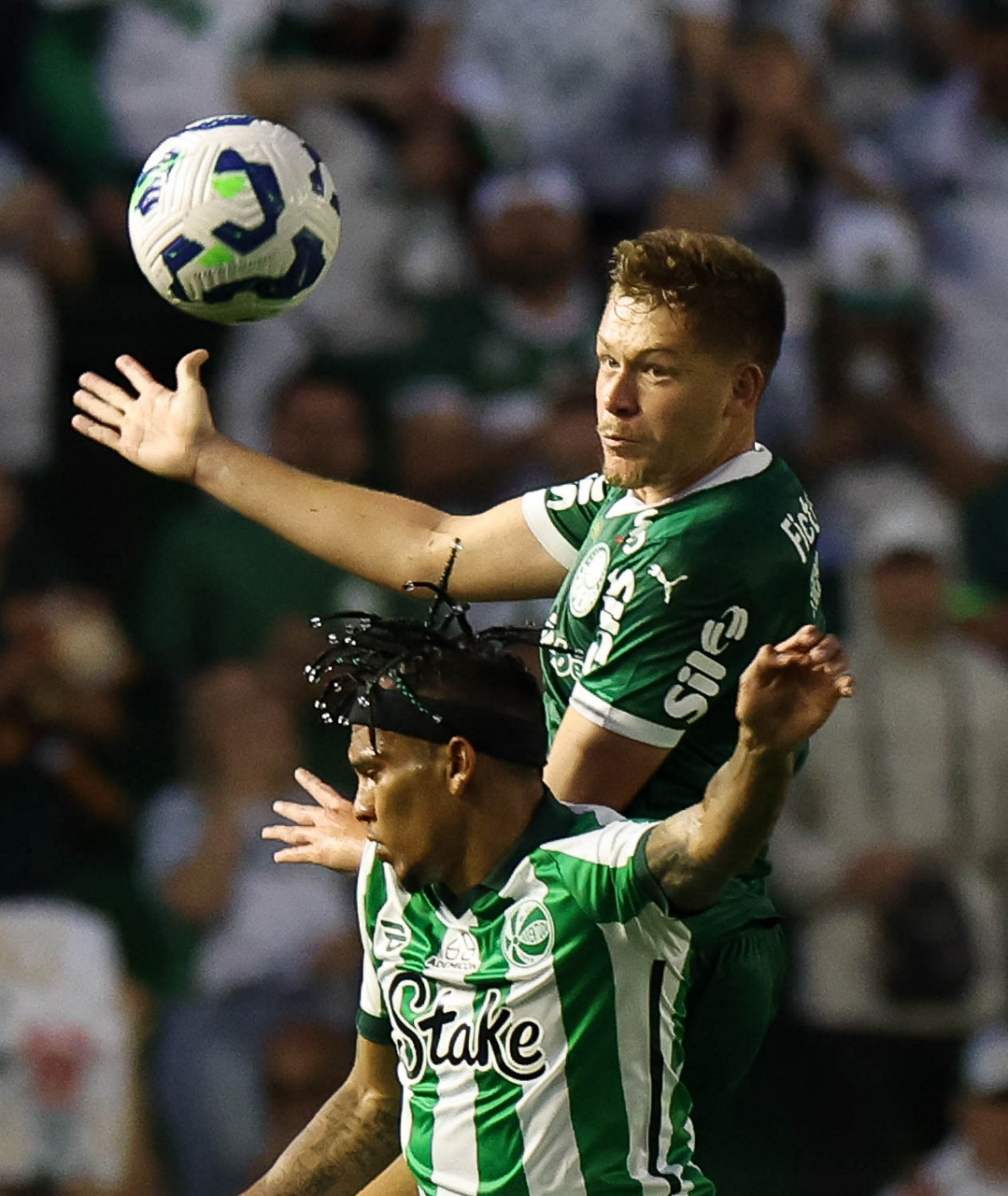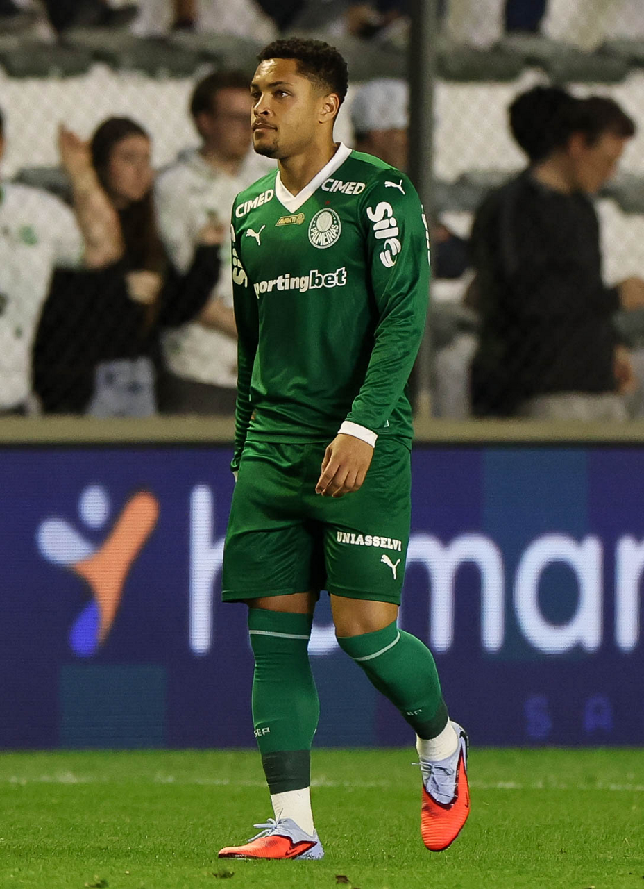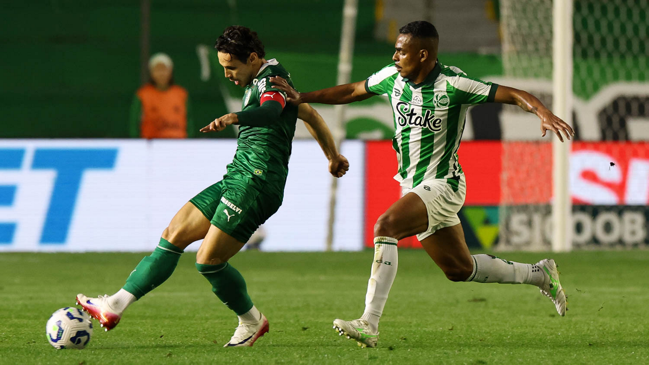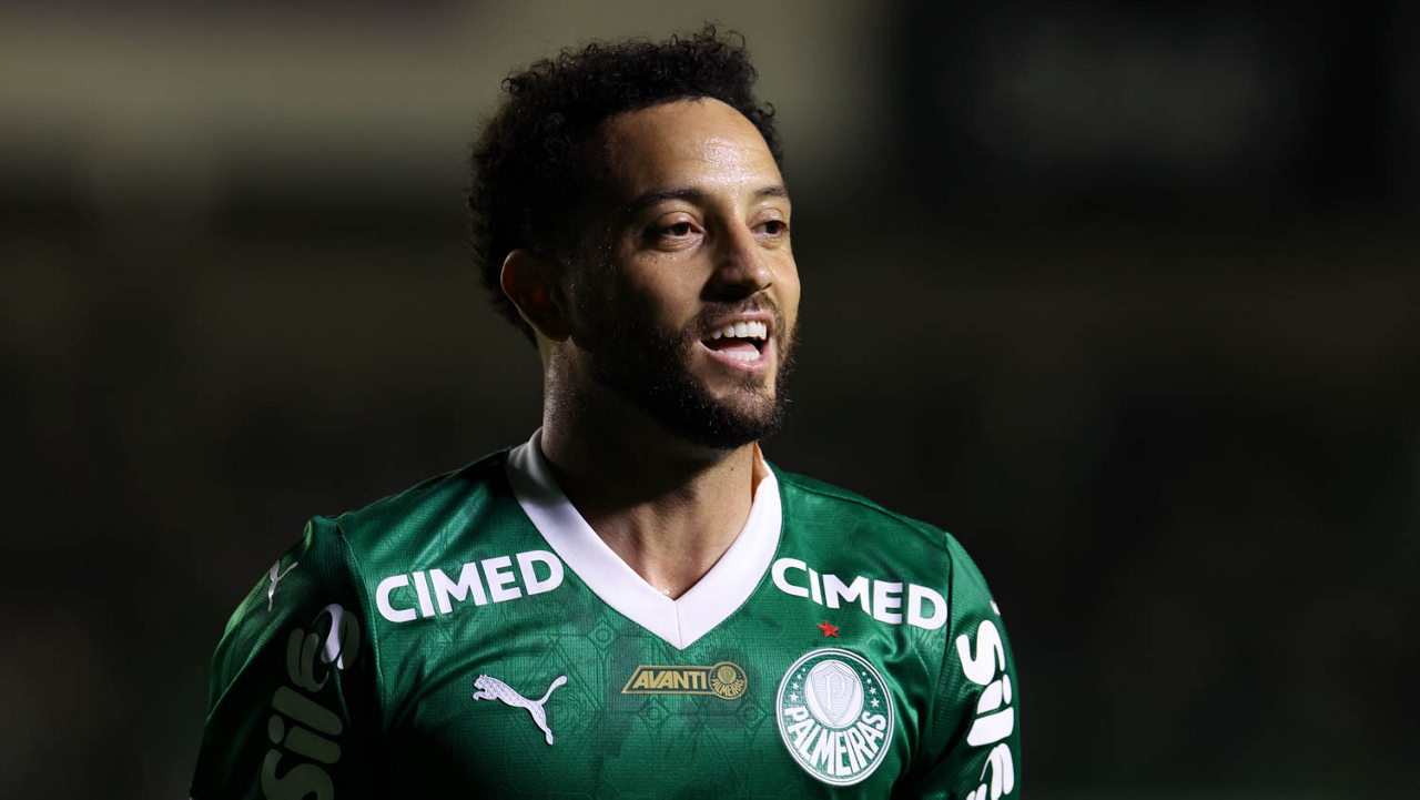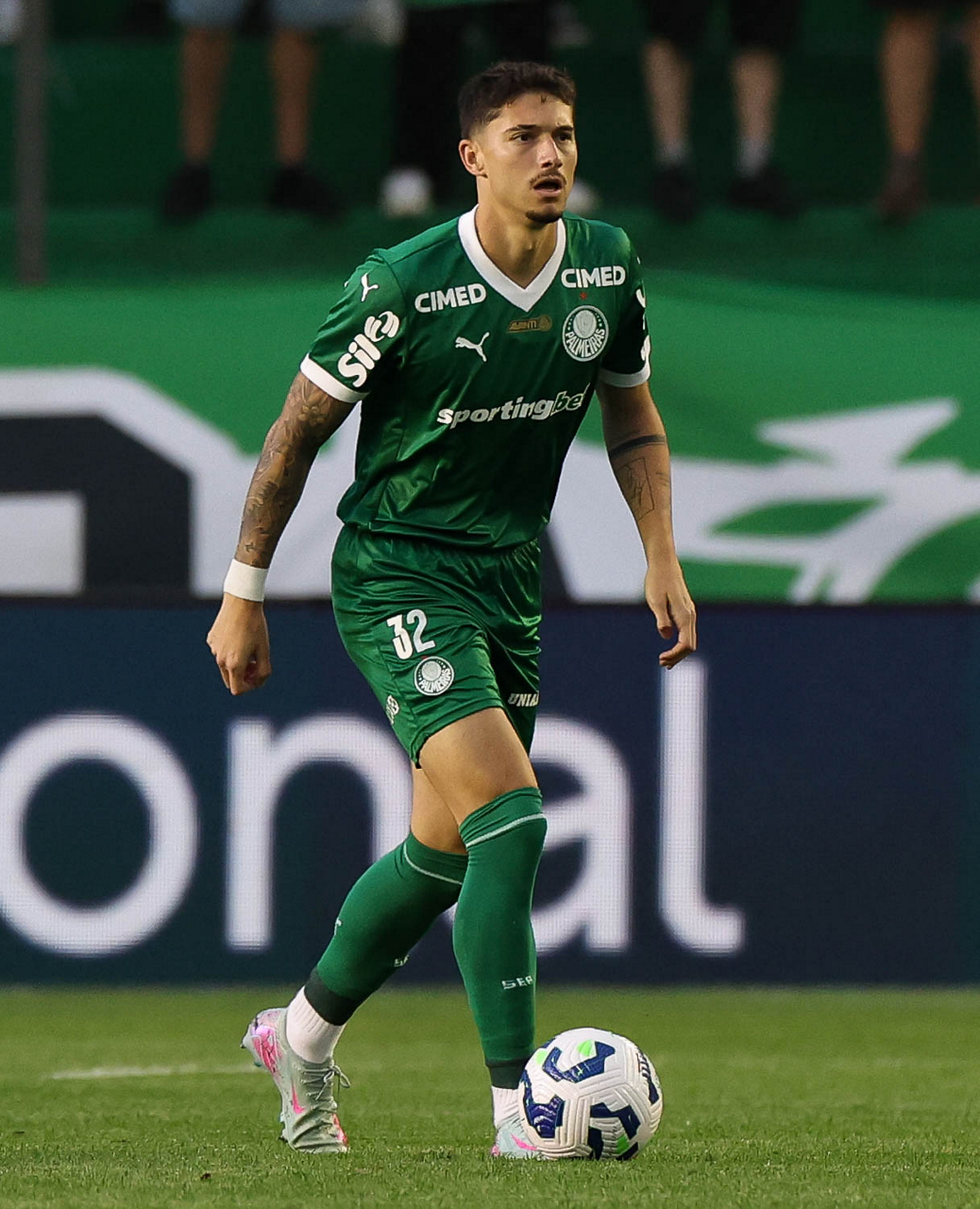 O jogador Felipe Anderson, da SE Palmeiras, chuta para marcar seu gol contra a equipe do EC Juventude, durante partida válida pela trigésima primeira rodada, do Campeonato Brasileiro, Série A, no Estádio Alfredo Jaconi. (Foto: Cesar Greco/Palmeiras/by Canon)