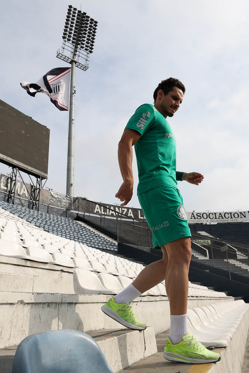 O jogador Allan, da SE Palmeiras, durante treinamento, no estádio da Alianza Lima. (Foto: Cesar Greco/Palmeiras/by Canon)