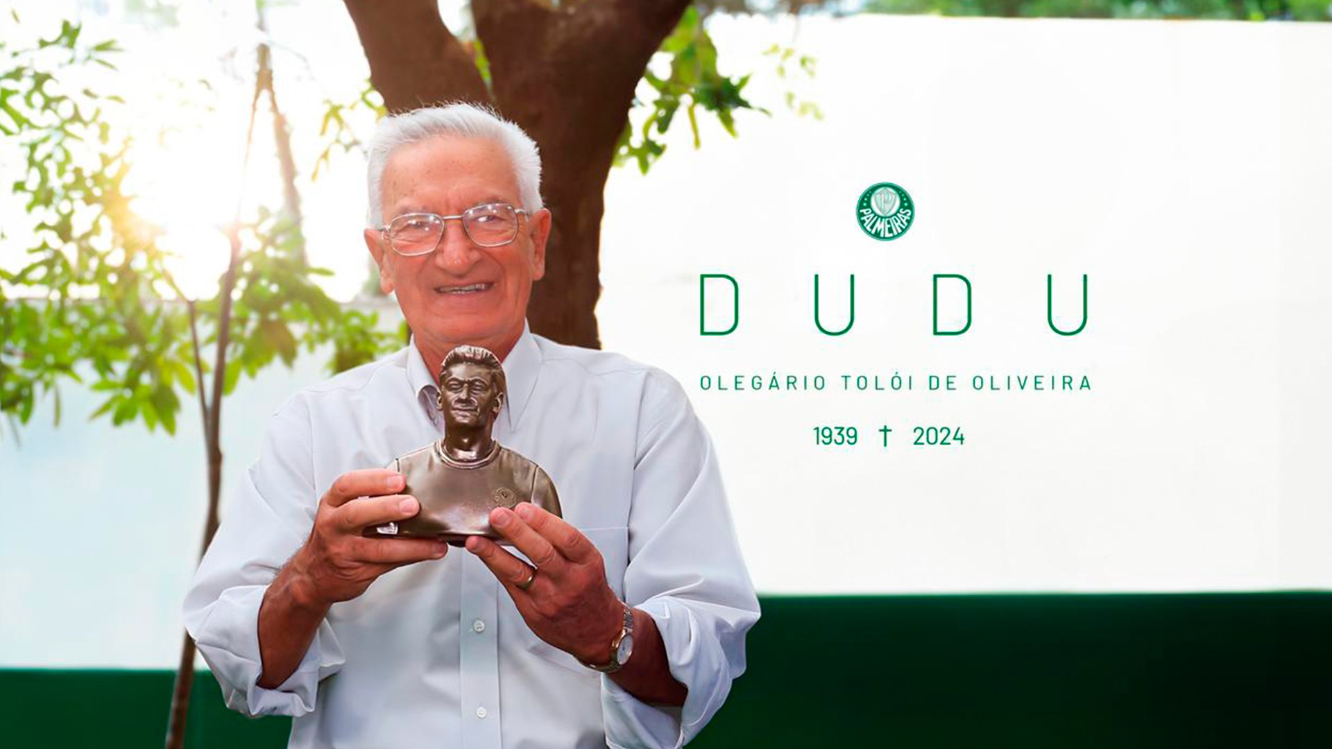 Com o coração partido, a Sociedade Esportiva Palmeiras lamenta informar que faleceu nesta sexta-feira (28), aos 84 anos, Olegário Tolói de Oliveira, o Dudu, um dos maiores ídolos de nossa gloriosa história. Quarto jogador que mais vezes atuou pelo Verdão, clube que defendeu em 615 jogos e por 13 temporadas seguidas, Dudu estava internado havia cerca de um mês, após sofrer fissura na bacia, e morreu por consequência de infecção abdominal.