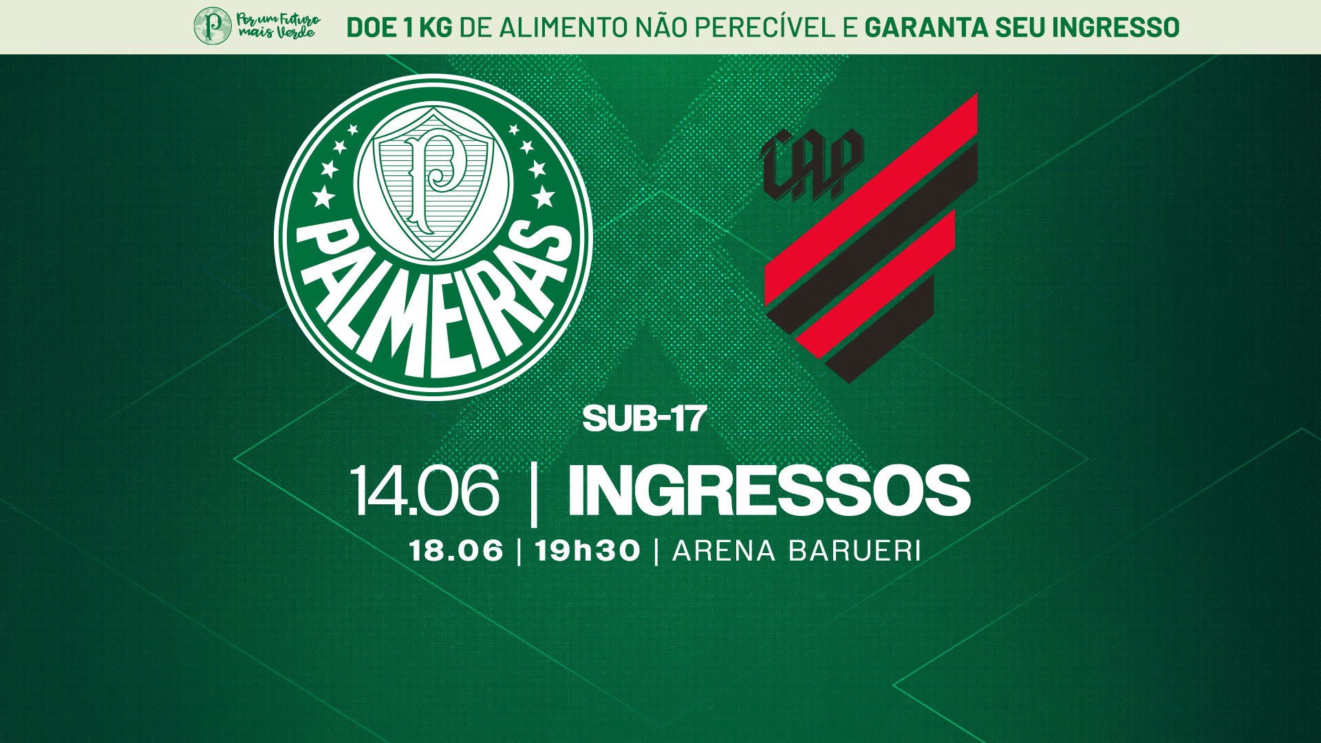 O acesso da torcida para a final da Copa do Brasil Sub-17 será gratuito. Na decisão, o Verdão enfrenta o Athletico-PR, neste domingo (18), às 19h30 (de Brasília), na Arena Barueri, em confronto único.