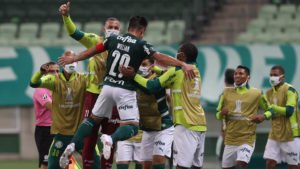 > Além de não perder em maio, o time palestrino também sofreu poucos gols. Nos sete jogos disputados até o momento, o Alviverde foi vazado em apenas dois confrontos (uma vez contra o Defensa y Justicia-ARG, na Argentina, e duas contra Santos, no Allianz Parque). Desde a vitória por 3 a 2 contra o Santos, o Maior Campeão do Brasil não tomou mais nenhum gol, acumulando uma série de quatro partidas sem ser superado defensivamente, todas como fora de casa.
