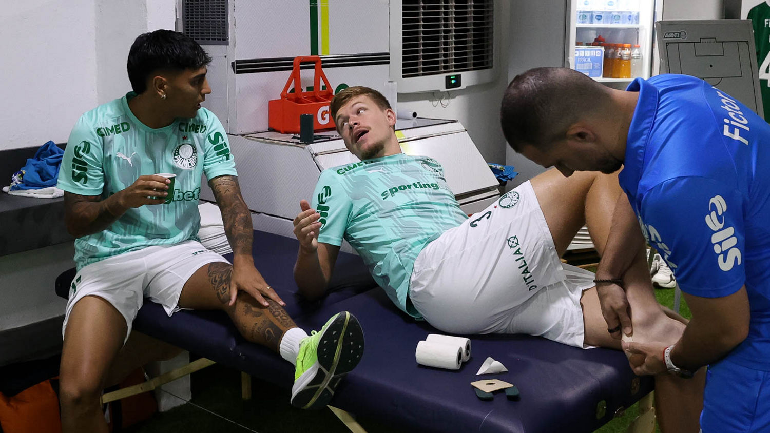 Pendurados: Weverton, Gustavo Gómez, Murilo, Piquerez, Andreas Pereira, Lucas Evangelista, Facundo Torres, José López e Vitor Castanheira (auxiliar técnico)