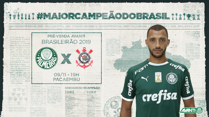 Os ingressos para o jogo entre Palmeiras e Corinthians, que acontecerá no sábado (09), às 19h, no estádio do Pacaembu, pela 32ª rodada do Campeonato Brasileiro, estão à venda para todos os torcedores por meio do site palmeiras.futebolcard.com, sendo que 31 mil foram vendidos antecipadamente.