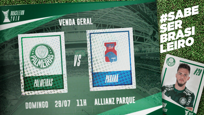 Os ingressos para o jogo entre Palmeiras e Paraná, que acontecerá no domingo (29), às 11h, no Allianz Parque, pela 16ª rodada do Campeonato Brasileiro, estão à venda para todos os torcedores por meio do site www.futebolcard.com – neste confronto, sócio Avanti adepto do Plano Bronze tem desconto de 20% no valor da entrada para os setores superiores do estádio. 32 mil ingressos já foram vendidos antecipadamente.