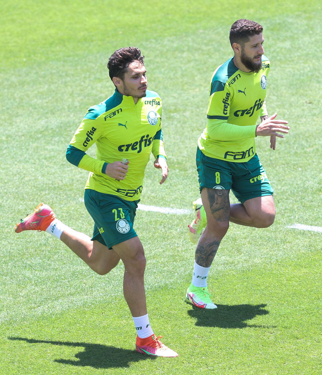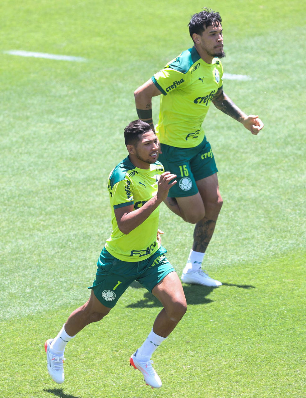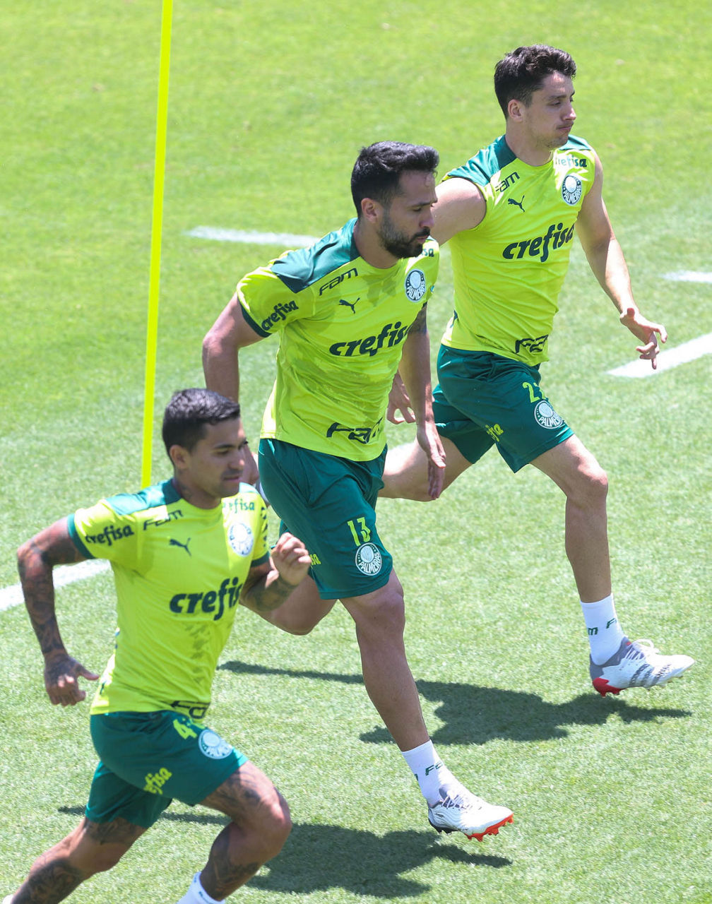 O elenco foi dividido em dois para atividades táticas posicionais em campos diferentes do CT. O técnico Abel Ferreira e sua comissão orientaram movimentações específicas, triangulações e saídas de jogo, entre outros aspectos. Quem atuou por mais de 45 minutos contra o Fortaleza, no sábado (20), encerrou a atividade mais cedo para um complemento físico com membros do Núcleo de Saúde e Performance.