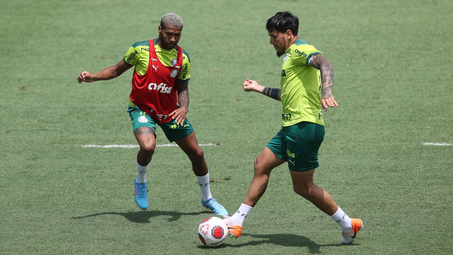 Com dois times completos no gramado, os aprimoramentos foram de saídas de bola, marcações, movimentos e posicionamentos específicos, transições rápidas depois de roubadas de bola, entre outras ações. A comissão alviverde orientou, cobrou intensidade e corrigiu bastante ao longo das movimentações. Na parte final ainda, alguns atletas aperfeiçoaram cobranças de pênaltis.