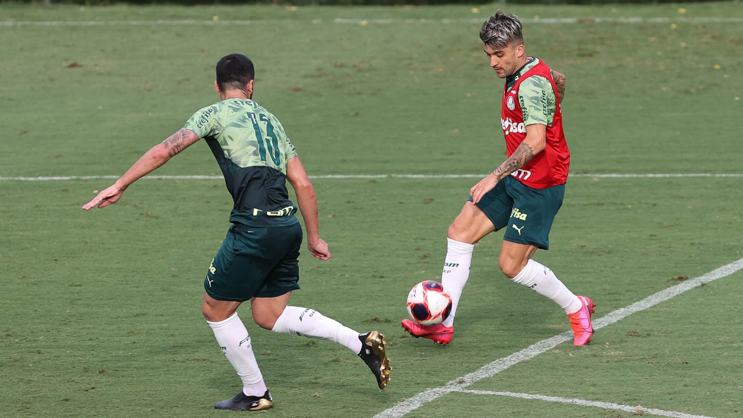O Palmeiras trabalhou a parte tática na tarde desta terça-feira (02), na Academia de Futebol. O treinador Abel Ferreira armou a movimentação com dimensões reduzidas e dispôs duas equipes no gramado.