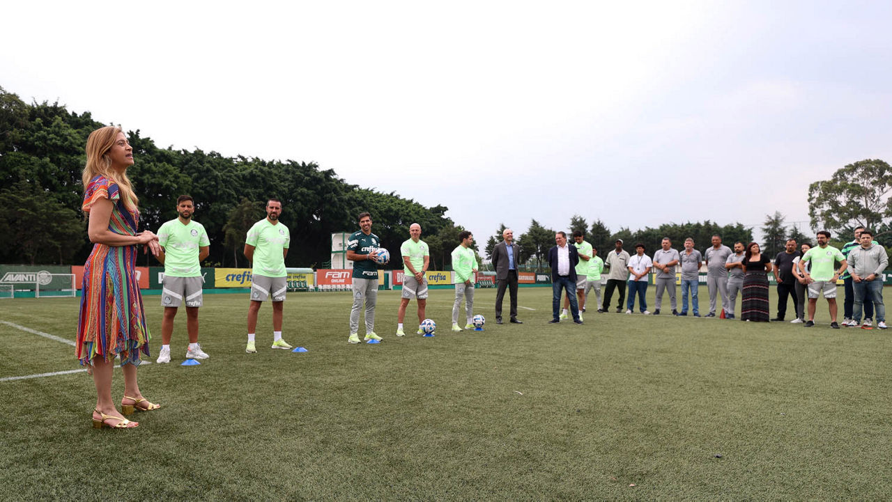 A manhã desta terça-feira (31) foi marcada por homenagens a Abel Ferreira e sua comissão técnica, que completam três anos de Palmeiras nesta semana. Funcionários da Academia de Futebol, além da presidente Leila Pereira, do vice-presidente Paulo Buosi e do ex-presidente Maurício Galiotte, reuniram-se no gramado para aplaudir e agradecer aos profissionais pela dedicação ao clube e pelos oito títulos conquistados no período.