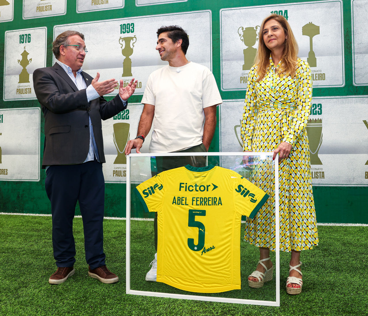 “Abel disse que a quinta-feira foi um dia mágico, mas eu costumo dizer que mágicos são esses cinco anos conosco. Tivemos momentos fantásticos nos quais celebramos, momentos difíceis também, mas o mais importante é que continuamos sempre juntos, olhando para a frente, querendo cada vez mais. Eu sou eternamente grata e, insisto, Abel é o maior técnico da história do Palmeiras. Não só por causa dos títulos que celebramos juntos, mas pelo seu método de trabalho, pela pessoa que é, pela obsessão que tem por vencer. Fico muito feliz de estar aqui e ainda temos muitos capítulos na nossa história. Que seja infinito enquanto dure, como disse Vinicius de Moraes”, discursou Leila Pereira.
