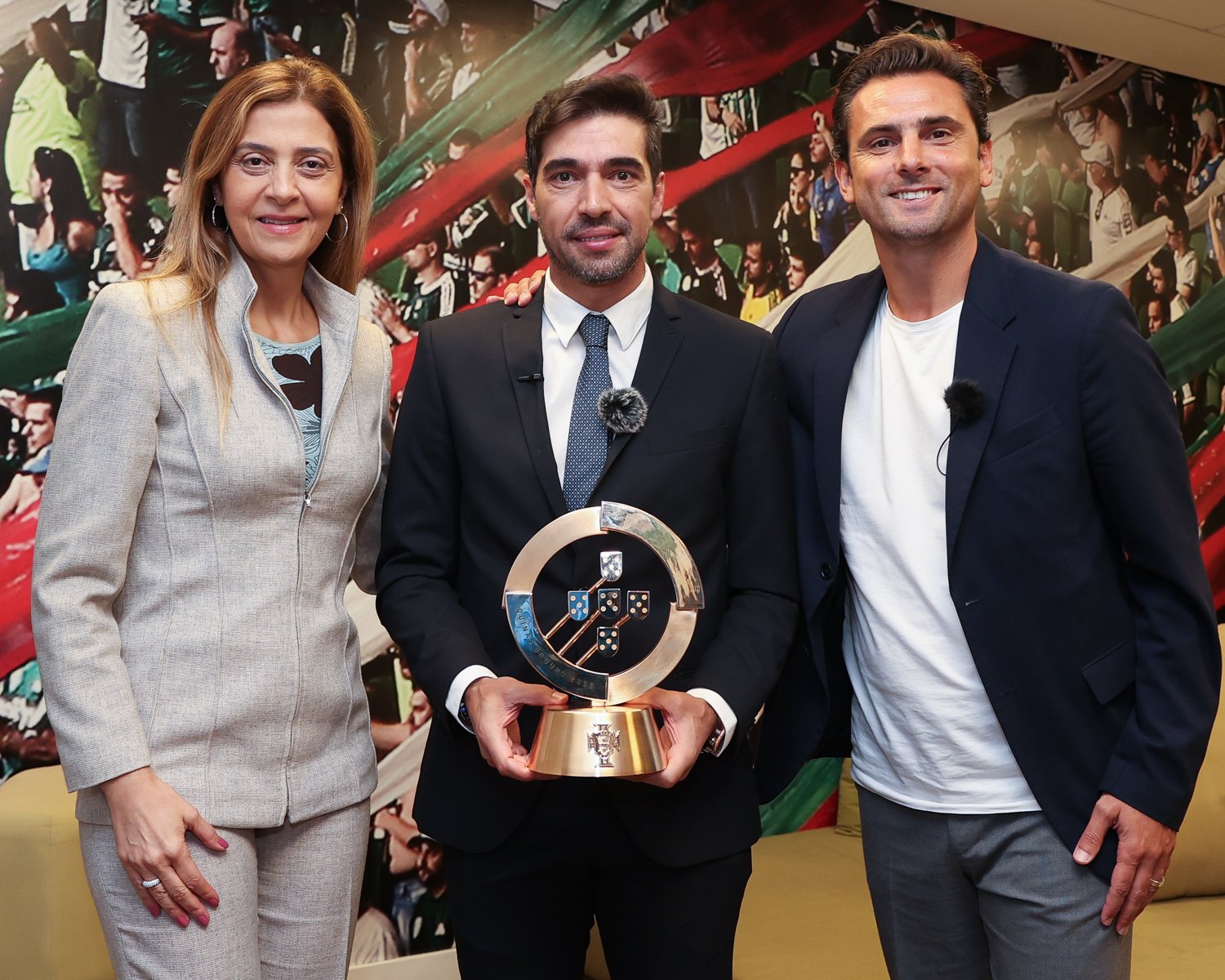 O técnico Abel Ferreira foi condecorado com o troféu Quinas de Ouro, mais alta distinção concedida pela Federação Portuguesa de Futebol (FPF) a treinadores do país. A cerimônia foi realizada nesta terça-feira (20) na sede da entidade, em Lisboa. O comandante bicampeão da Conmebol Libertadores, que não pôde estar presente devido a compromissos profissionais com o Verdão, recebeu o prêmio das mãos do ex-atacante Helder Postiga, atual diretor da FPF.