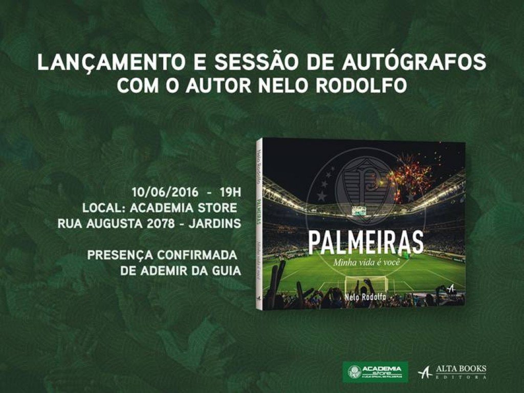 Com a presença do ídolo Ademir da Guia, o palmeirense Nelo Rodolfo estará na Academia Store da Rua Augusta na próxima sexta-feira (10), das 19h às 22h, para conceder uma noite de autógrafos do livro "Palmeiras Minha Vida é Você". Para garantir acesso ao evento, basta adquirir um exemplar da publicação na Academia Store da Rua Augusta (nº 2078) até a data do evento.
