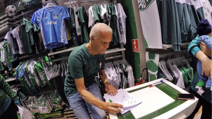 Ademir da Guia protagoniza noite de autógrafos em loja oficial do Palmeiras