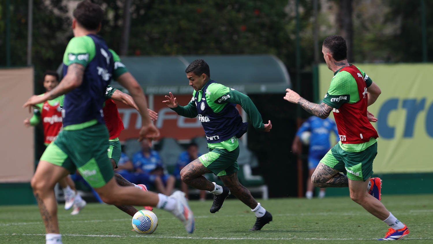 O Palmeiras realizou na manhã deste sábado (07), na Academia de Futebol, uma simulação de jogo em preparação ao duelo com o Criciúma, no dia 15, às 16h, no Allianz Parque, pela 26ª rodada do Campeonato Brasileiro. Foi promovido um ‘amistoso’ usando o próprio elenco com dois tempos de 30 minutos e campo em dimensões reduzidas (as linhas de fundo e as metas foram delimitadas no início das duas áreas). O time azul venceu por 7 a 4, e um dos destaques foi o atacante Flaco López, autor de dois gols.