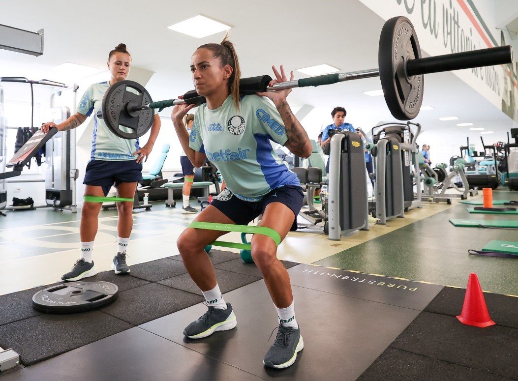 A primeira etapa do dia aconteceu na parte interna do centro de excelência. As Palestrinas usaram os equipamentos da academia para trabalhos de ativação, mobilidade e musculação.