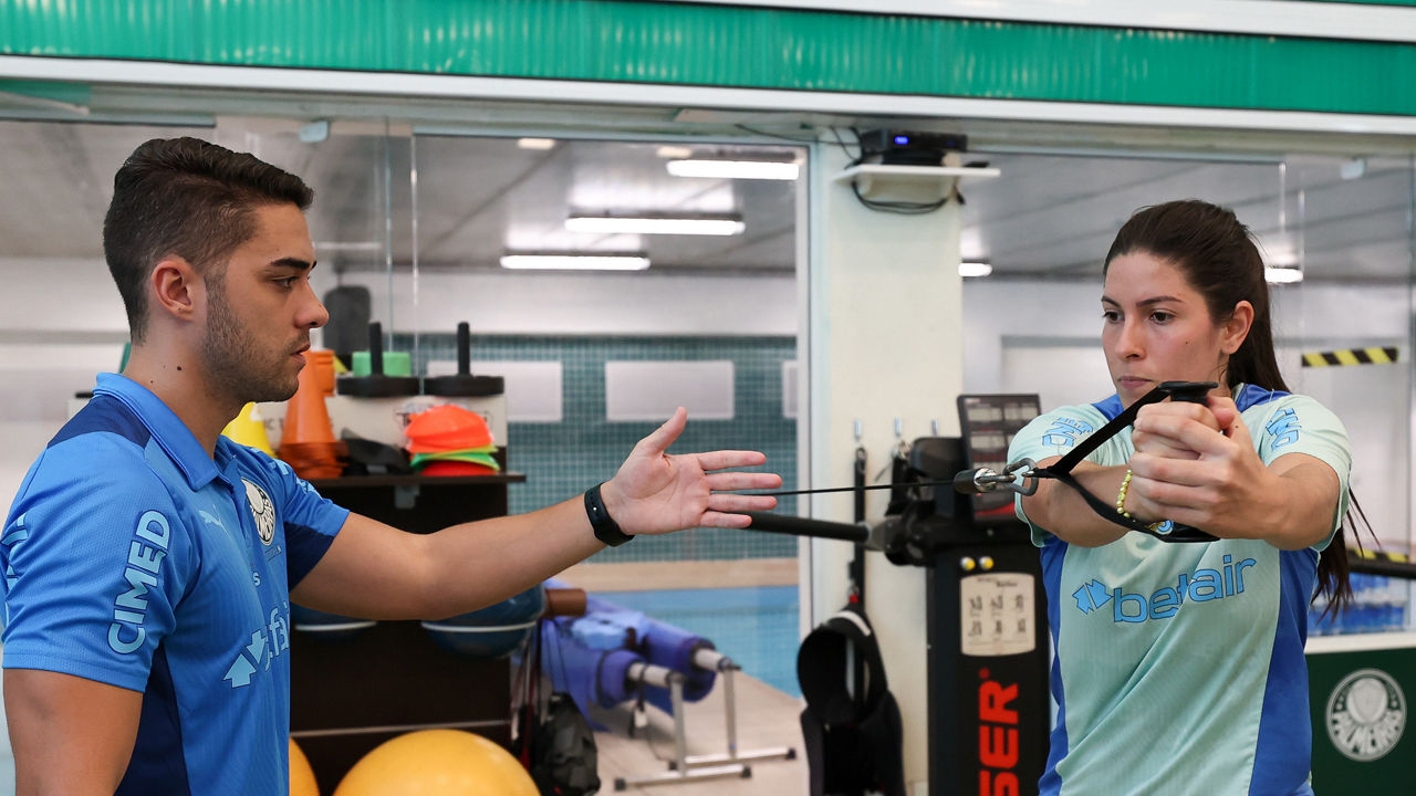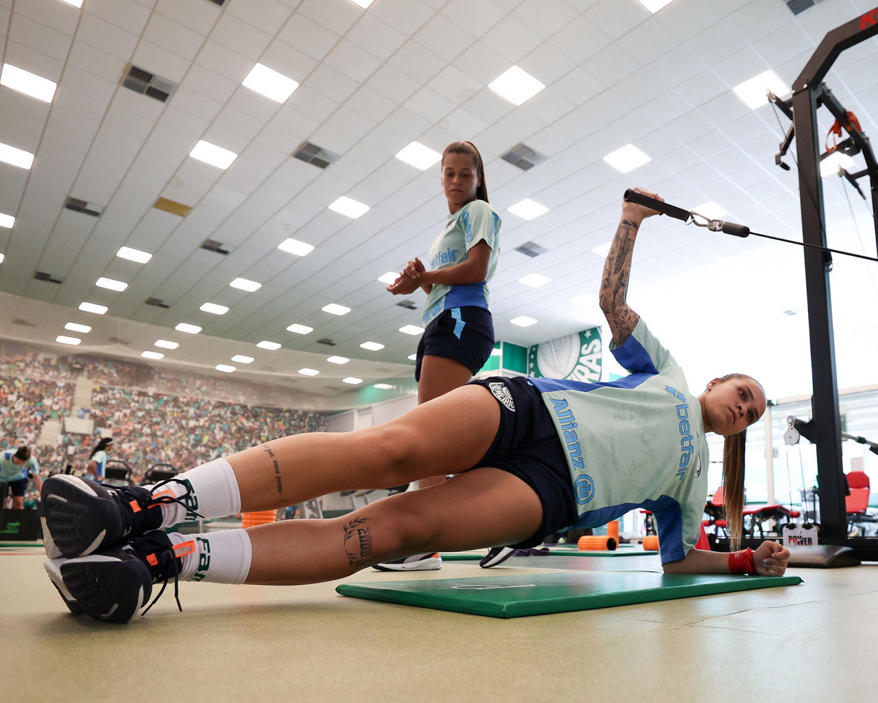A primeira etapa do dia aconteceu na parte interna do centro de excelência. As Palestrinas usaram os equipamentos da academia para trabalhos de ativação, mobilidade e musculação.