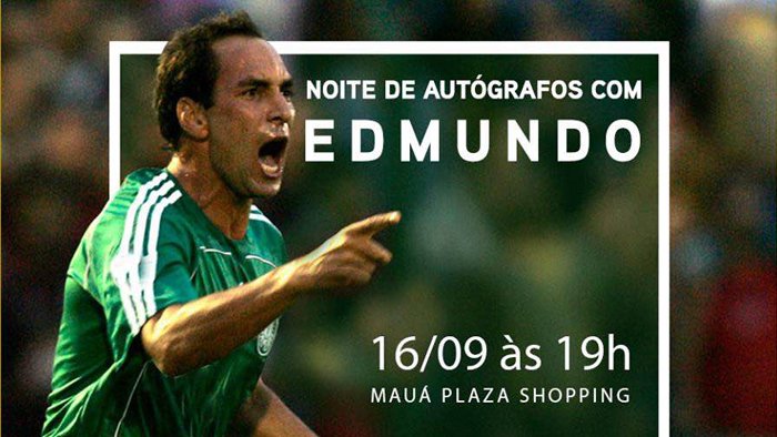 O ídolo Edmundo voltará a ser protagonista de um evento da Academia Store, a rede de lojas oficiais do Palmeiras. Depois de fazer sucesso nas unidades do Mooca Plaza Shopping, em São Paulo, e do CenterVale Shopping, em São José dos Campos, o eterno camisa 7 concederá noite de autógrafos na loja do Mauá Plaza Shopping, em 16 de setembro (sexta-feira), a partir das 19h (de Brasília).