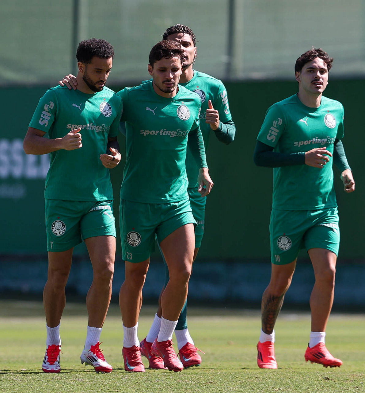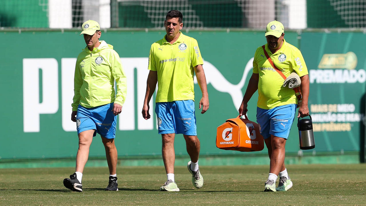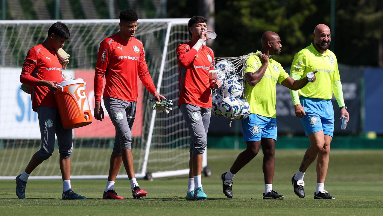 O Palmeiras treinou na manhã desta quinta-feira (08), na Academia de Futebol, horas depois de ter vencido o Cerro Porteño-PAR por 2 a 0 (gols de Estêvão e Vitor Roque), na noite de quarta (07), em Assunção, no Paraguai, pela fase de grupos da CONMEBOL Libertadores. O elenco alviverde chegou na madrugada e dormiu no centro de treinamento.