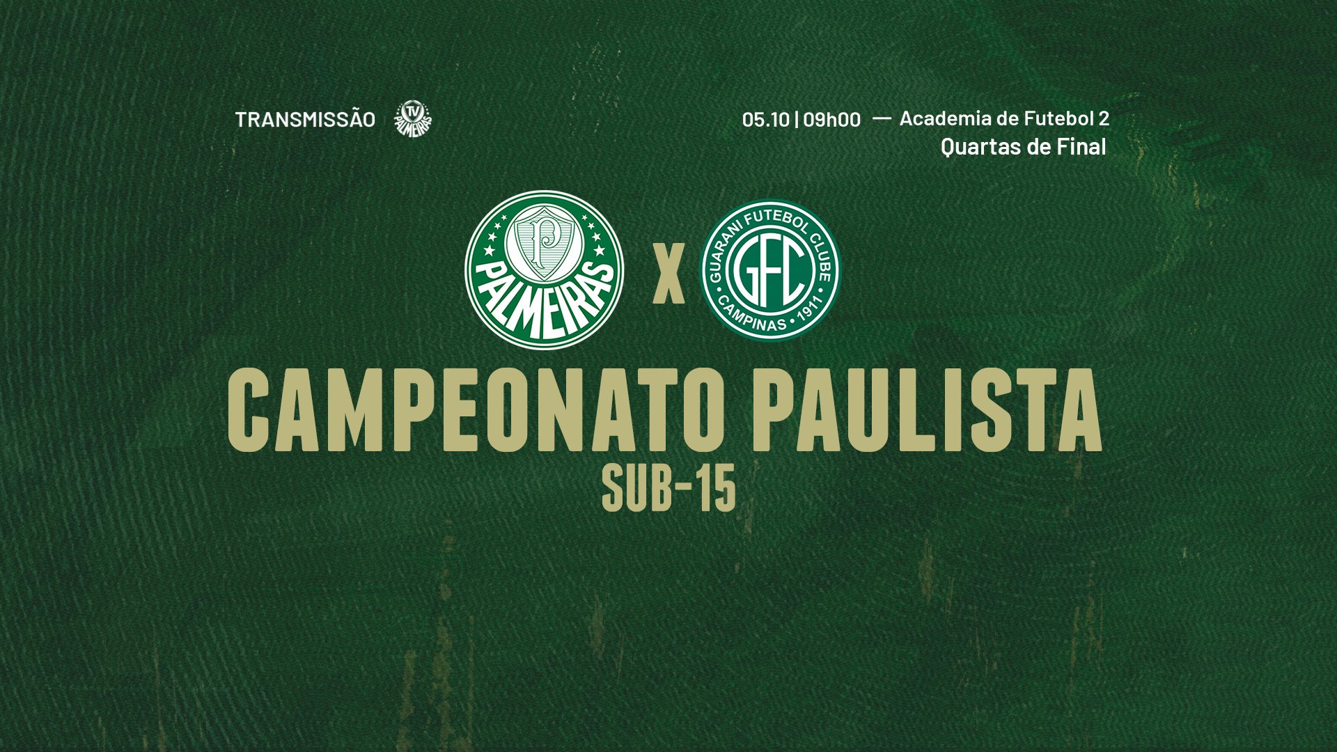 O time Sub-15 do Palestra terá pela frente o Guarani, neste sábado (05), às 09h (de Brasília), na Academia de Futebol 2, em Guarulhos, pela partida de volta das quartas do Campeonato Paulista da categoria. O confronto terá transmissão da TV Palmeiras/FAM.