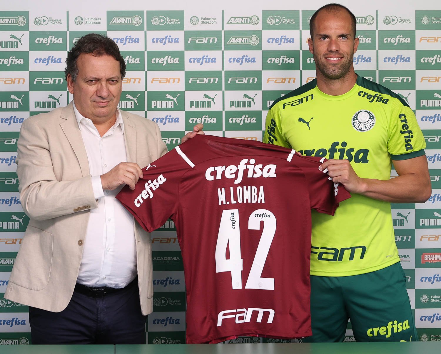 “É a grande oportunidade da minha carreira. Recebo essa camisa com muito orgulho, essa camisa 42 é importante, estava aprendendo sobre a história do clube e sei que são 80 anos da Arrancada Heroica, então isso só me dá mais disposição e dedicação para trabalhar e cooperar com os jogadores e o treinador para fazer bonito e escrever mais um capítulo na história do Palmeiras”, disse Lomba, que ressaltou ter optado pelo Verdão em meio a outras propostas.