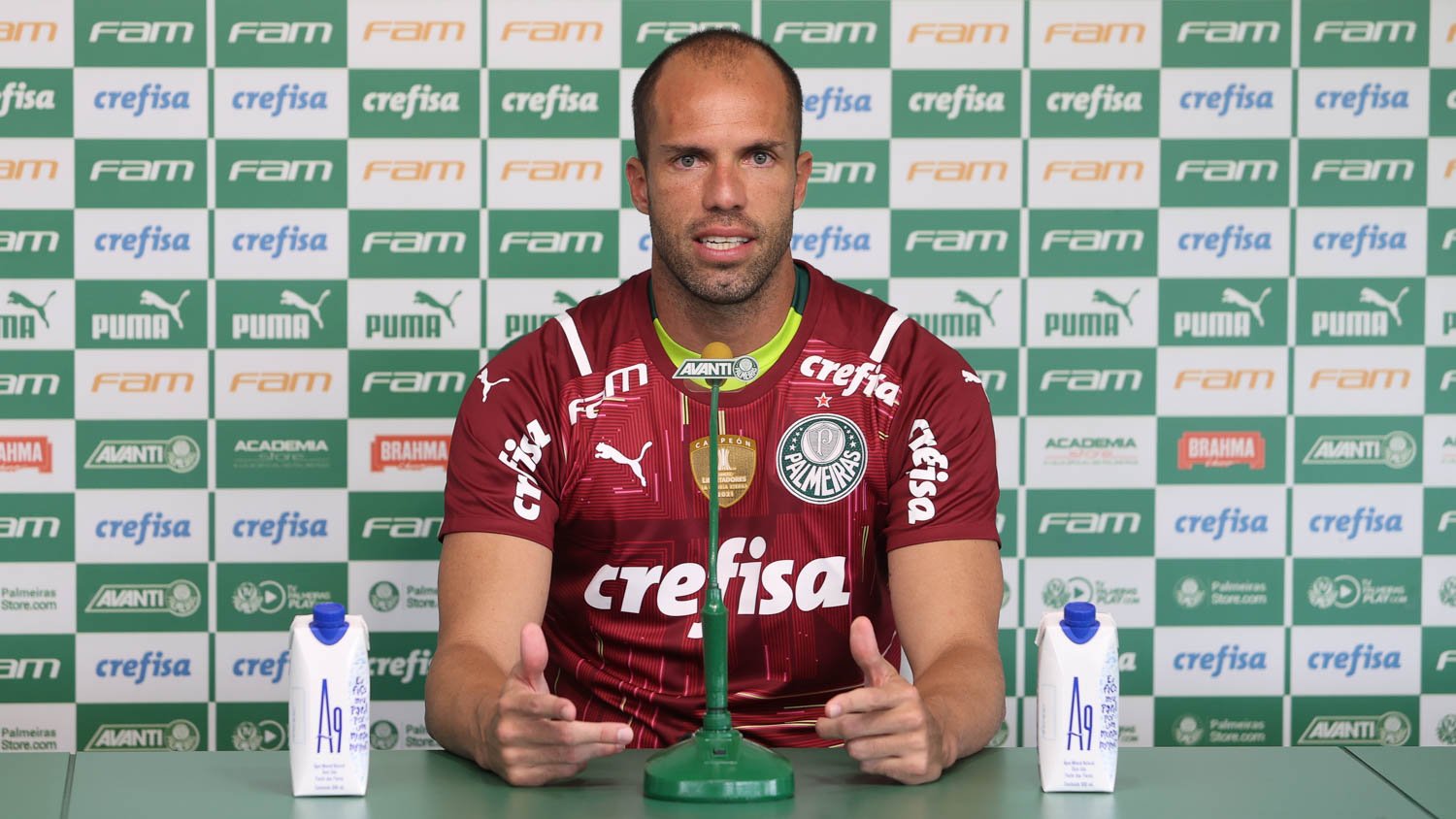 “A motivação é vestir a camisa do Maior Campeão do Brasil, bicampeão nos últimos dois anos da América, tricampeão. Fazer parte desse elenco que está escrevendo capítulos lindos na história do Palmeiras, grandes jogadores, um treinador muito competente. Tinha outras possibilidades de ir para fora do Brasil, foi desejo meu. Eu quis vestir essa camisa, que é uma Academia de Goleiros. Desde o Marcos, que quando eu era jovem era o goleiro da Seleção Brasileira. Isso brilhou aos meus olhos, quis vir para cá. É um ano especial, já começamos com um campeonato muito importante. Não vai faltar esforço, tenho visto diariamente a capacidade e a intensidade do Abel”, completou o mais novo goleiro do clube.