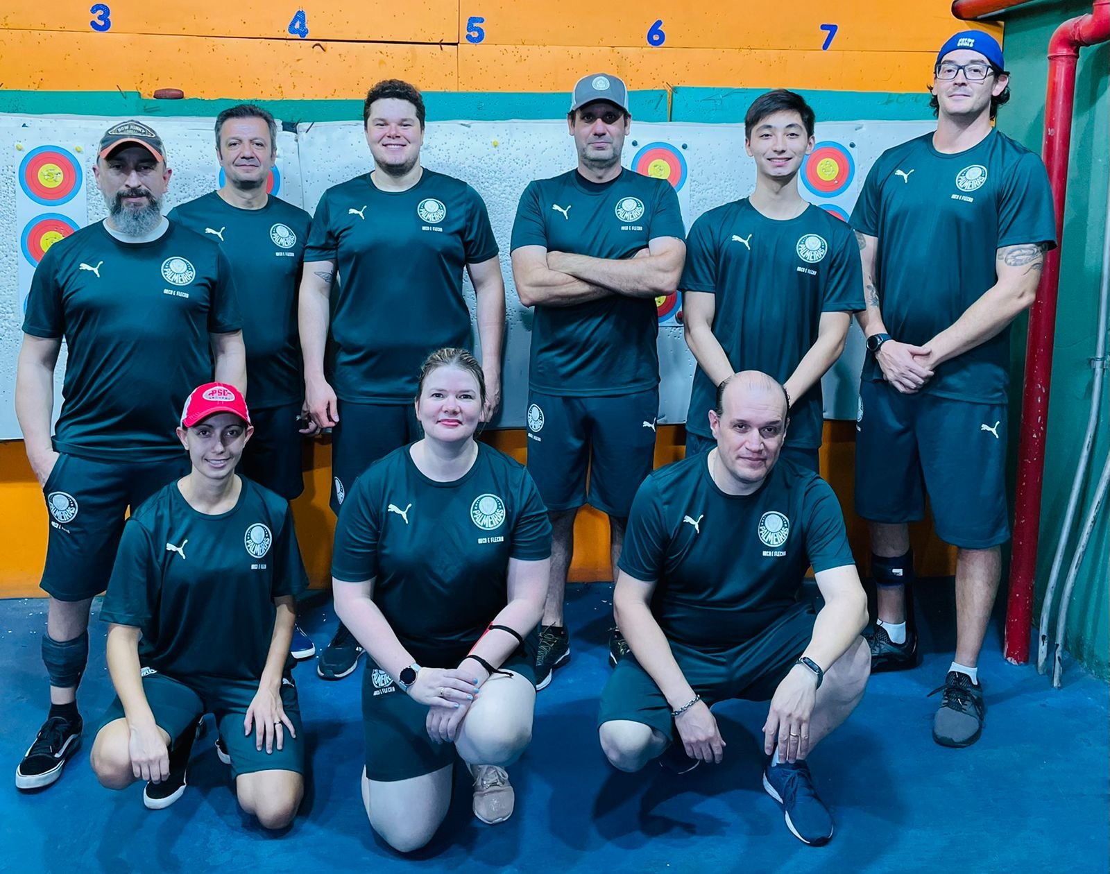 Equipe de tiro com arco posa para foto em sua segunda competição no ano (Foto: Divulgação/Palmeiras)