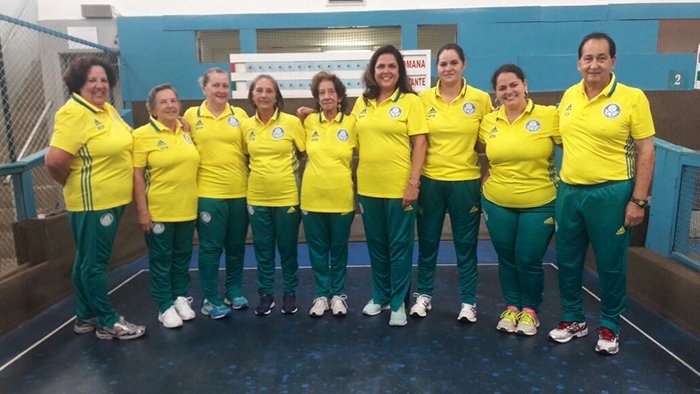 A equipe feminina de bocha do Palmeiras estreou “com a mão direita” no último domingo (5), na vitória diante do Ypiranga por 3 a 0 (15 a 3 no trio, 15 a 3 nas duplas e 15 a 10 no individual), no C. R. Vila Romana. Com esta pontuação, o Verdão aparece entre as melhores equipes da primeira rodada.