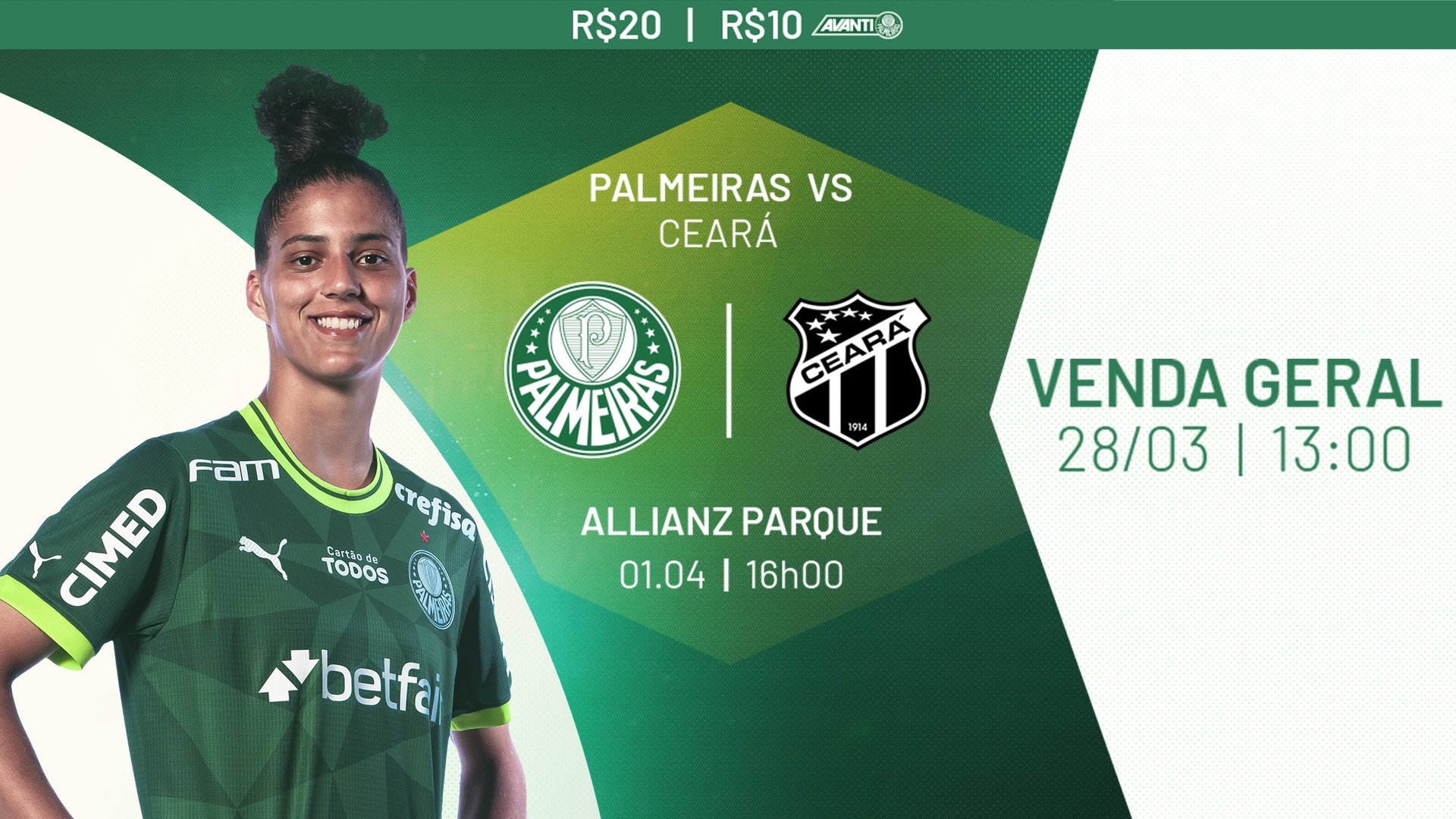 Os ingressos para a partida contra o Ceará, que acontece no próximo sábado (1º), às 16h, no Allianz Parque, pela sexta rodada do Brasileiro Feminino, já estão à venda para os sócios Avanti e torcedores comuns pelo site www.ingressospalmeiras.com.br.
