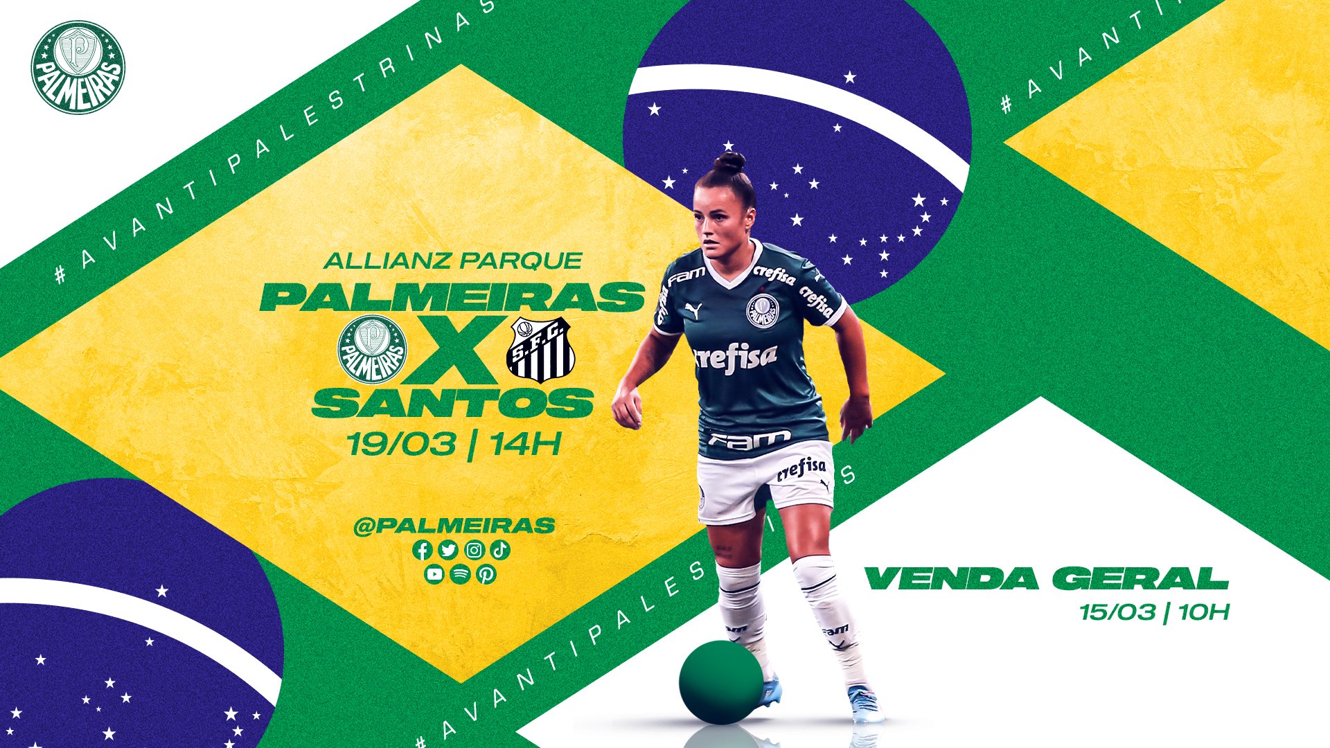 Os ingressos para o jogo contra o Santos, que acontece no próximo sábado (19), às 14h, no Allianz Parque, pela terceira rodada do Brasileiro Feminino, estarão à venda para todos os torcedores nesta terça-feira (15), às 10h, por meio do site www.ingressospalmeiras.com.br.