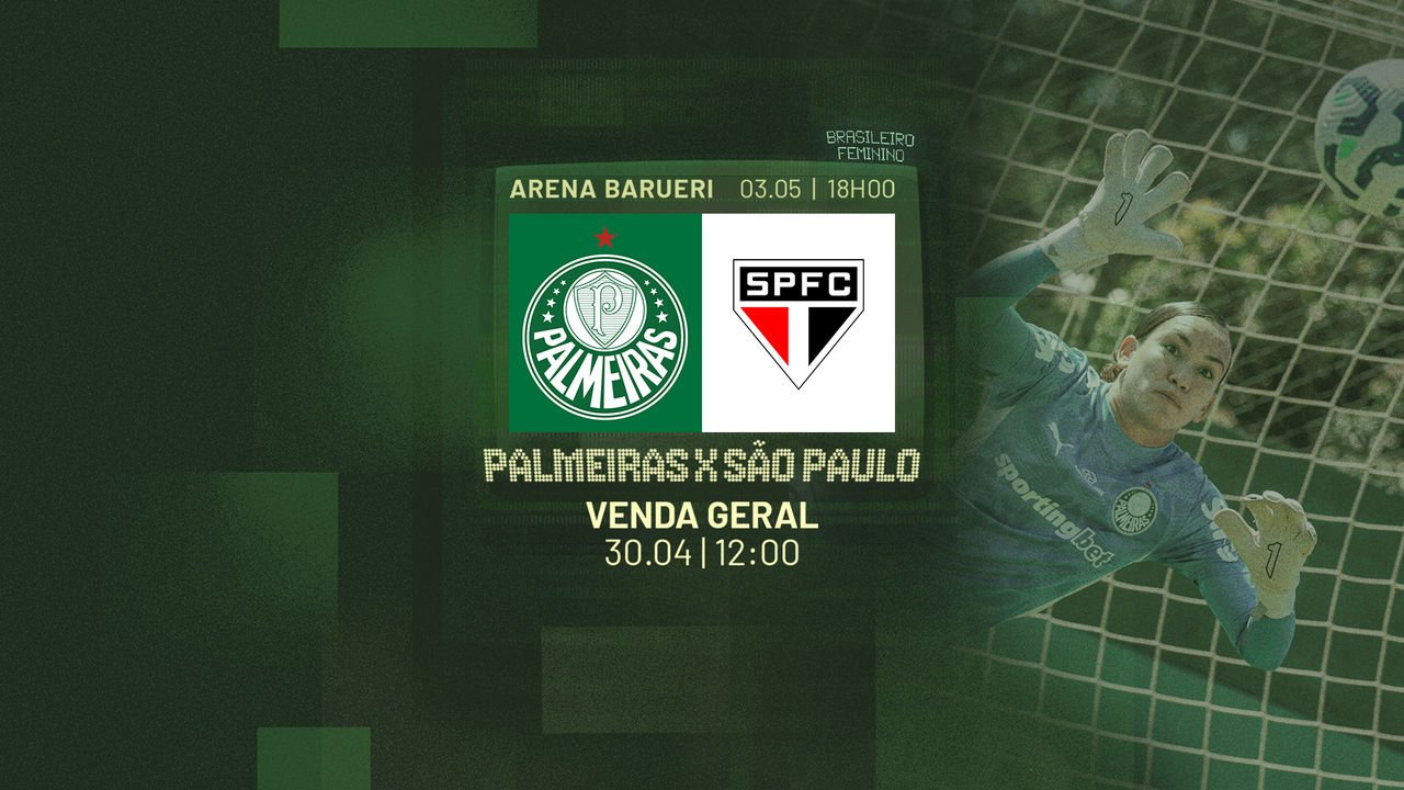 Os ingressos para o jogo do time feminino do Palmeiras, contra o São Paulo, no próximo sábado (03), às 18h, na Arena Barueri, estarão à venda nesta quarta-feira (30), às 12h, pelo site ingressospalmeiras.com.br.