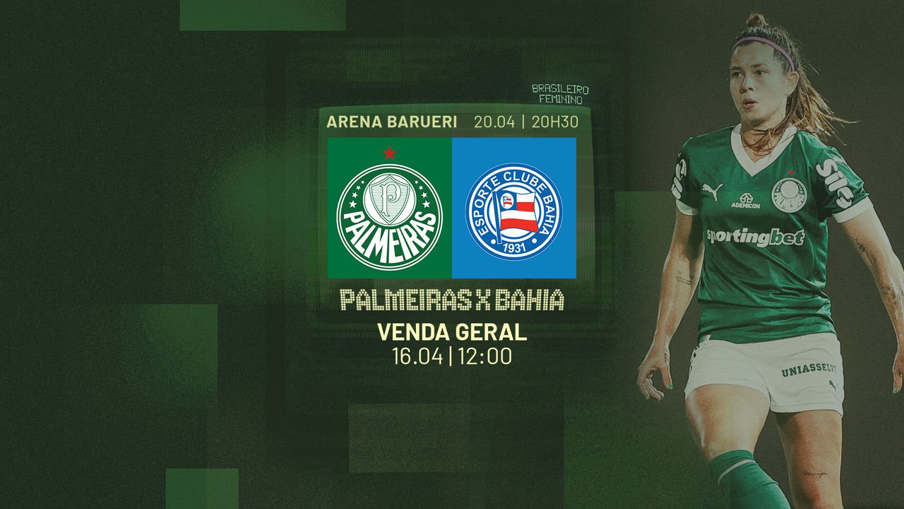 Os ingressos para o jogo do time feminino do Palmeiras, contra o Bahia, no próximo domingo (20), às 20h30, na Arena Barueri, estarão à venda nesta quarta-feira (16), às 12h, pelo site ingressospalmeiras.com.br.