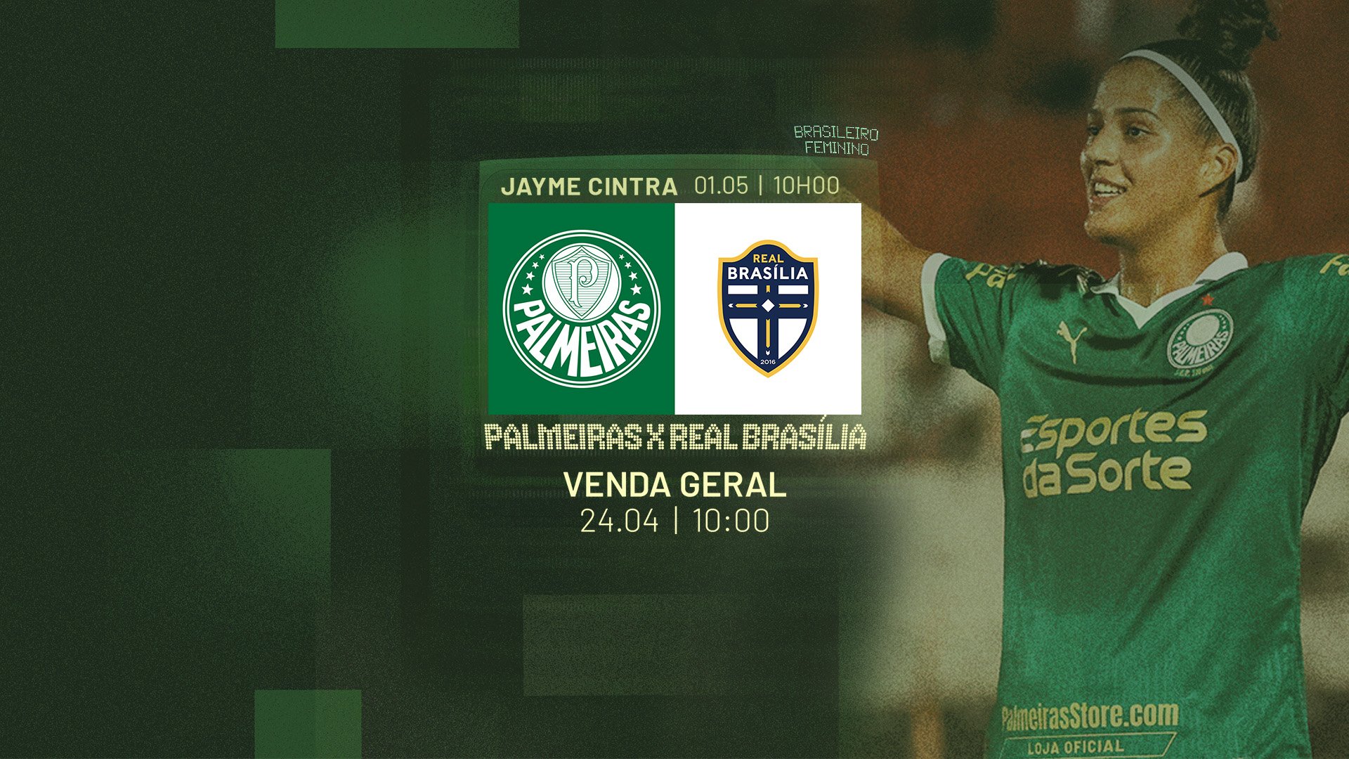 Os ingressos para a oitava rodada do Brasileiro Feminino, contra o Real Brasília, no dia 1° de maio, às 10h, no Estádio Jayme Cintra, em Jundiaí-SP, já estão à venda pelo site palmeiras.soudaliga.com.br.