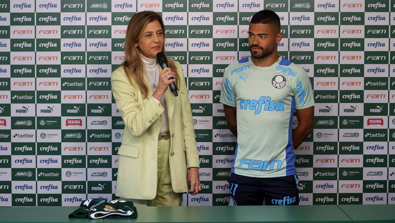 O meio-campista Bruno Tabata foi apresentado oficialmente nesta sexta-feira (12), na sala de imprensa da Academia de Futebol – ex-Sporting, de Portugal, o jogador de 25 anos assinou vínculo com o Palmeiras até 30 de junho de 2026. Após receber a camisa com o número 27 da presidente Leila Pereira, o reforço não escondeu a satisfação por poder atuar pelo bicampeão da Libertadores.