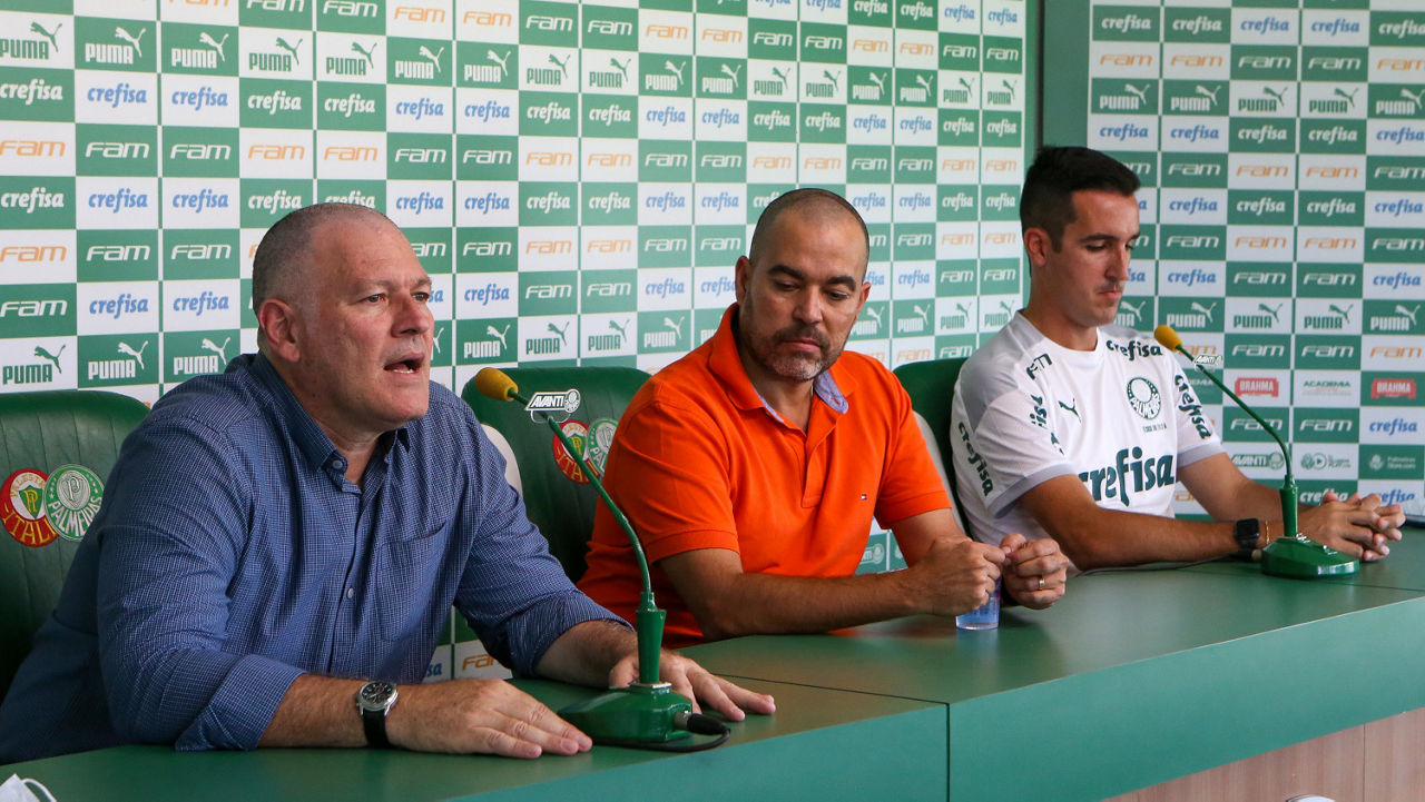 Após treinar com o elenco profissional pela manhã, o goleiro Mateus, o volante Pedro Bicalho e o atacante Endrick concederam entrevista coletiva na tarde desta quinta-feira (27), na sala de imprensa da Academia de Futebol, como representantes do grupo campeão da Copa São Paulo de Futebol Júnior na última terça-feira (25). O diretor do Centro de Formação de Atletas do Palmeiras, Marcelo Dedeschi, o coordenador geral da base, João Paulo Sampaio, e o técnico da equipe Sub-20, Paulo Victor Gomes, abriram a cerimônia.